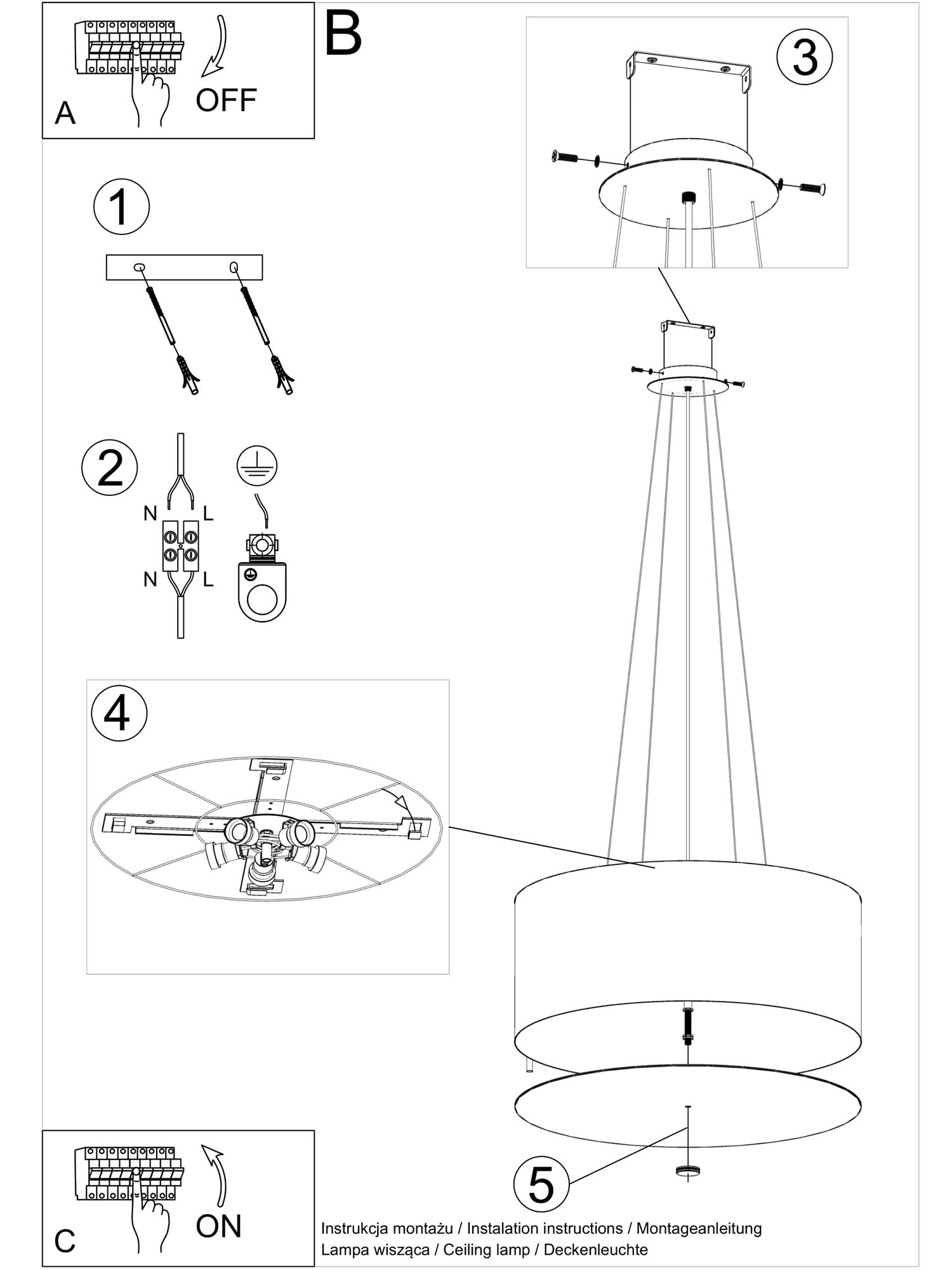- Źródło światła: E27, 5x60W, 5x15W LED, 50-60Hz, ~220-230V, IP20, klasa ochronności I