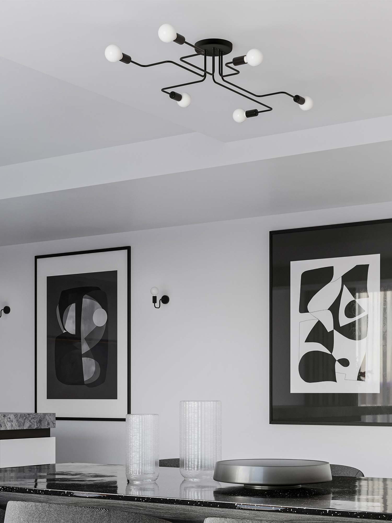Minimalistyczny, loftowy kształt w połączeniu z ponadczasową czernią sprawia, że żyrandol pasuje do salonu, jadalni, biura czy sypialni. Dzięki swojej uniwersalności będzie idealnym wyborem dla osób, które pragną połączyć funkcjonalność i estetykę w jednym produkcie.
