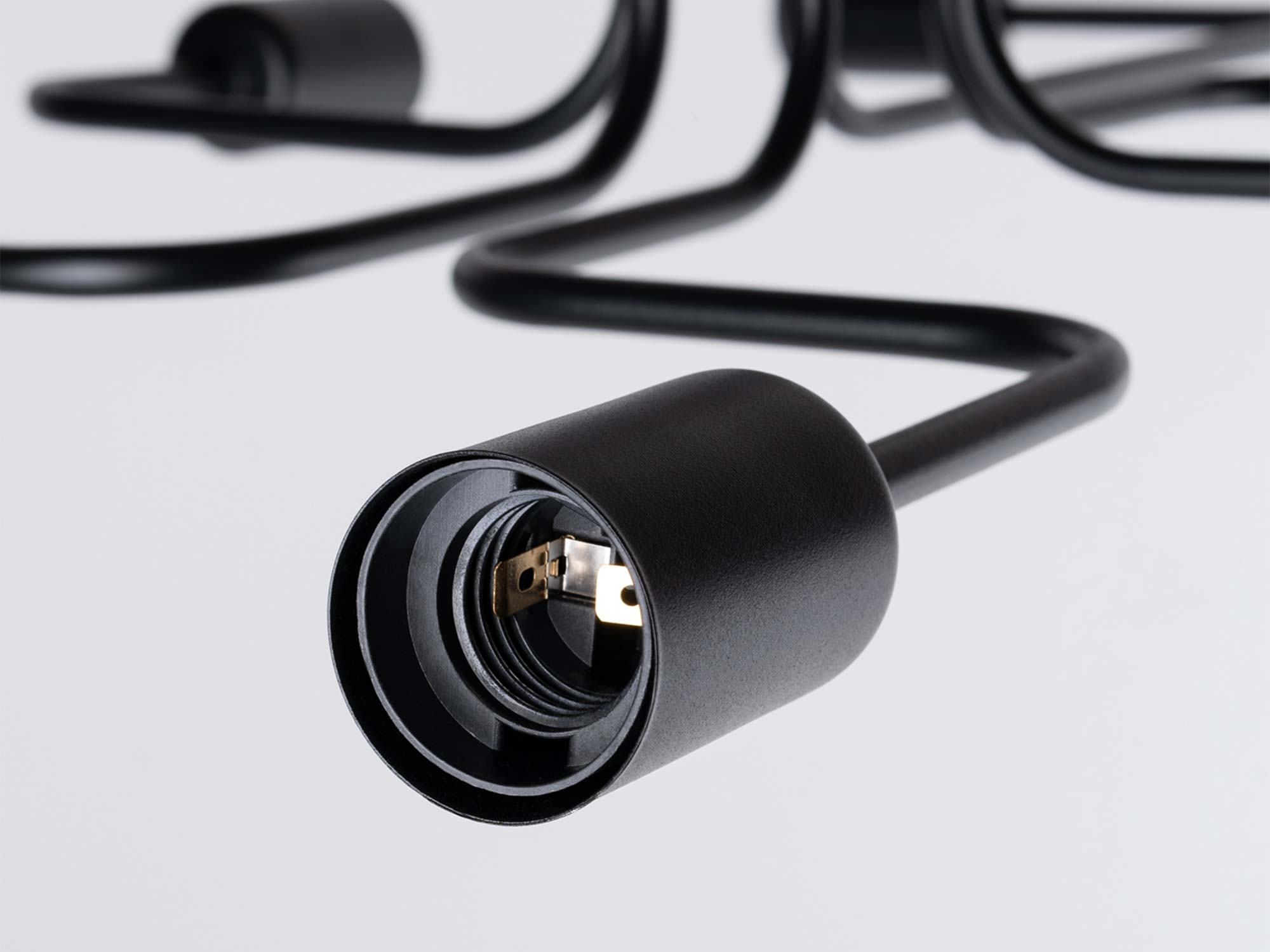 Żyrandol VECTIS 6 czarny to więcej niż lampa. To symbol nowoczesnej elegancji, która doskonale wpisuje się w trendy wnętrzarskie. Wykonany ze stali, gwarantuje trwałość i niezawodność, a dzięki zastosowaniu gniazd E27 daje swobodę w wyborze źródeł światła – od klasycznych żarówek LED po dekoracyjne filamenty.