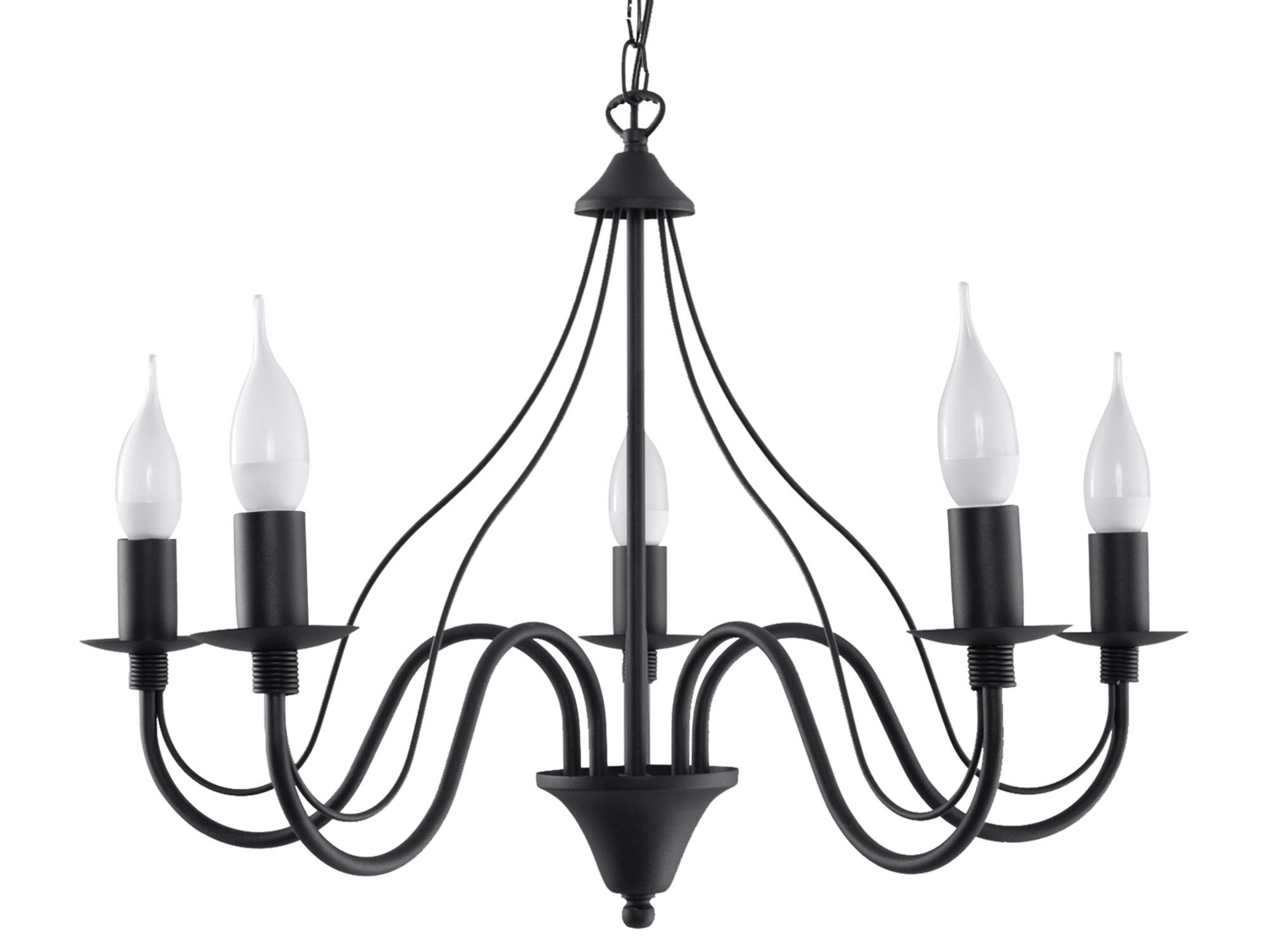 - Źródło światła: E14, 5x40W, 5x12W LED, 50-60Hz, ~220-230V. Ta lampa współpracuje zarówno z tradycyjnymi żarówkami, jaki energooszczędnymi źródłami światła LED.