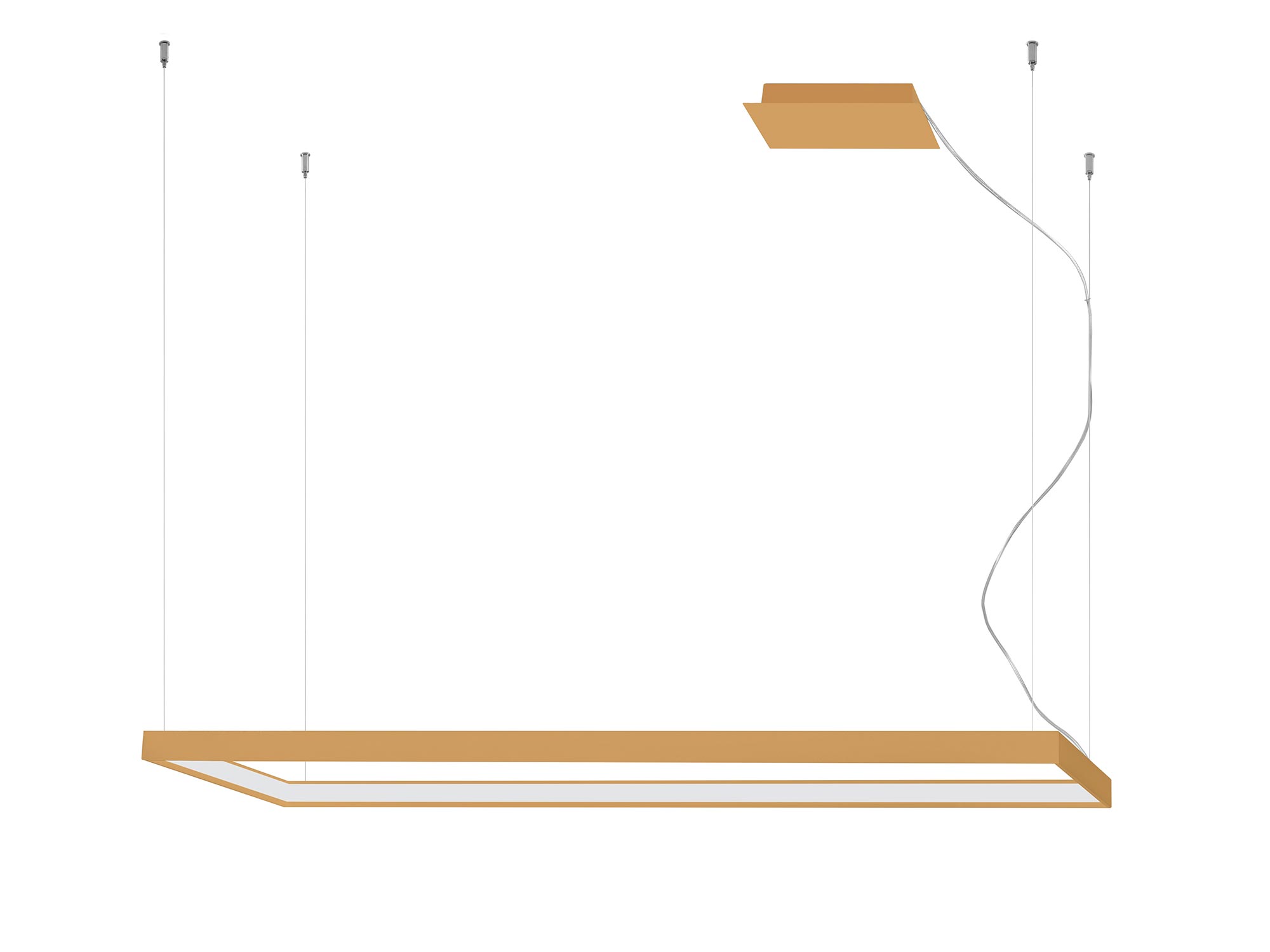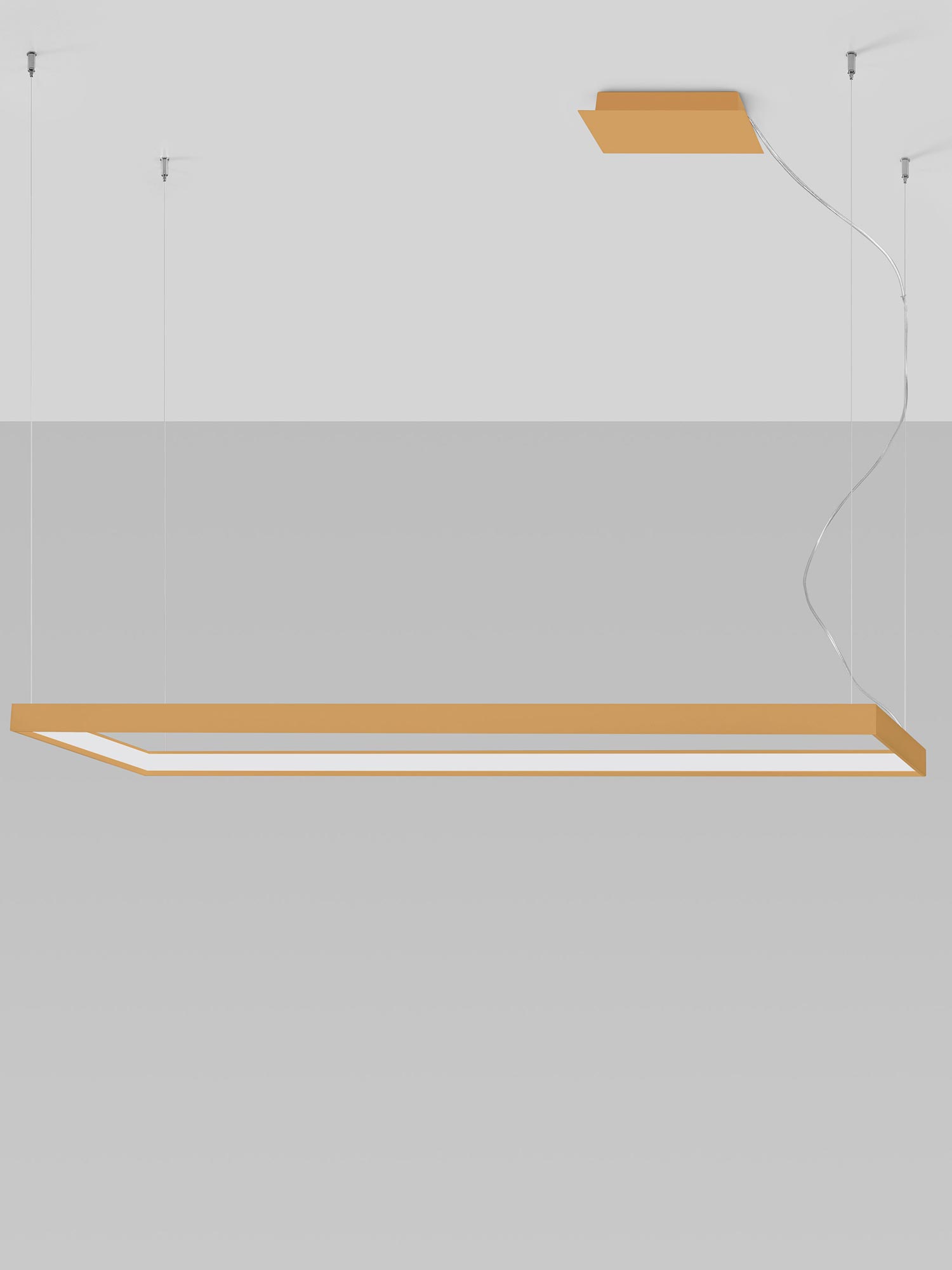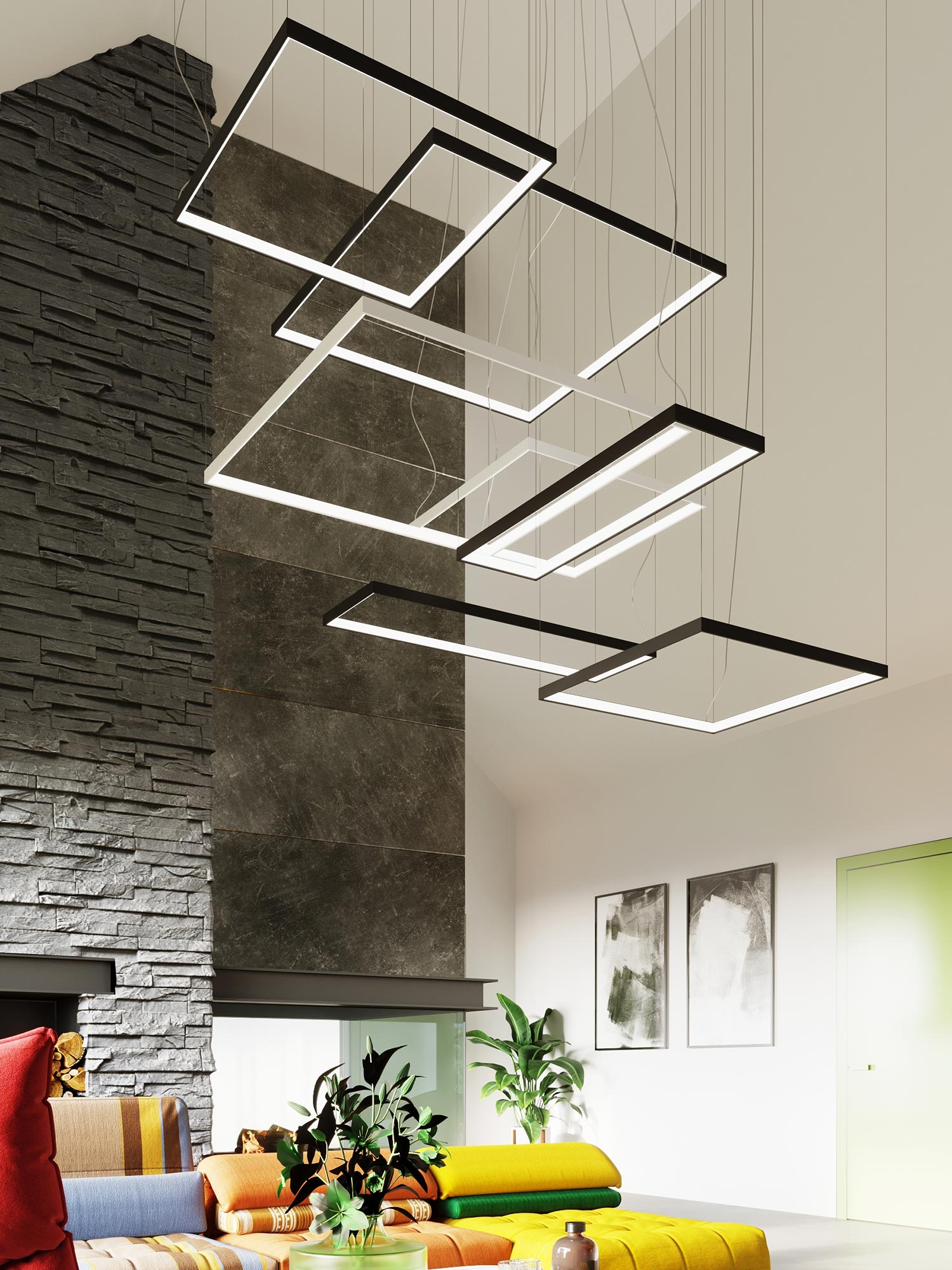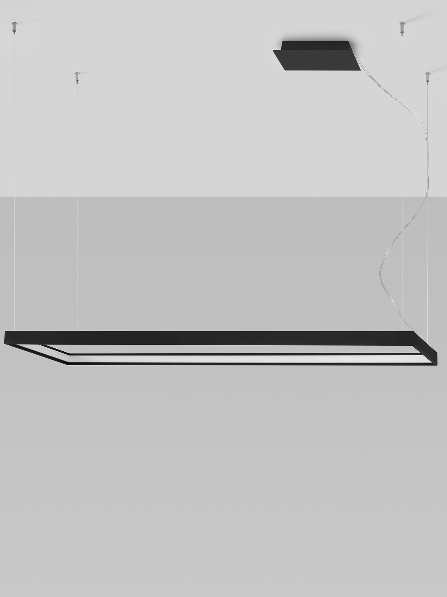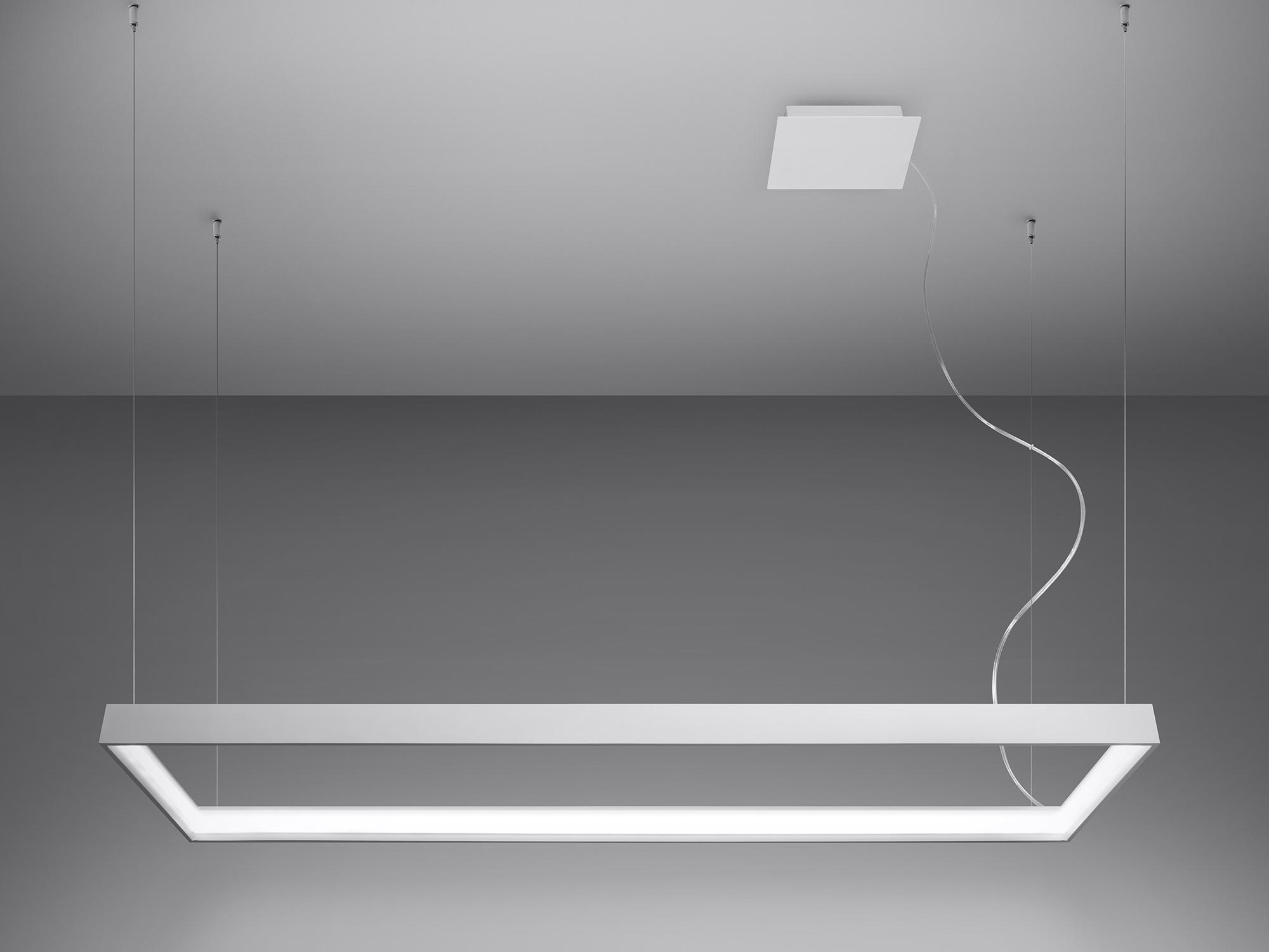 Esencją kolekcji TURIN jest prostokątna, smukła oprawa połączona z fantazyjnym zawiesiem. Minimalistyczny profil wygląda lekko, niemal jak zawieszony w powietrzu, a jednocześnie kryje w sobie moduł LED o rozproszonym świeceniu. Zamiast punktowego „placka” światła otrzymujesz równą, miękką poświatę, która sprzyja rozmowom, relaksowi i codziennym rytuałom. To światło, które nie męczy wzroku i pięknie wydobywa kolory materiałów.