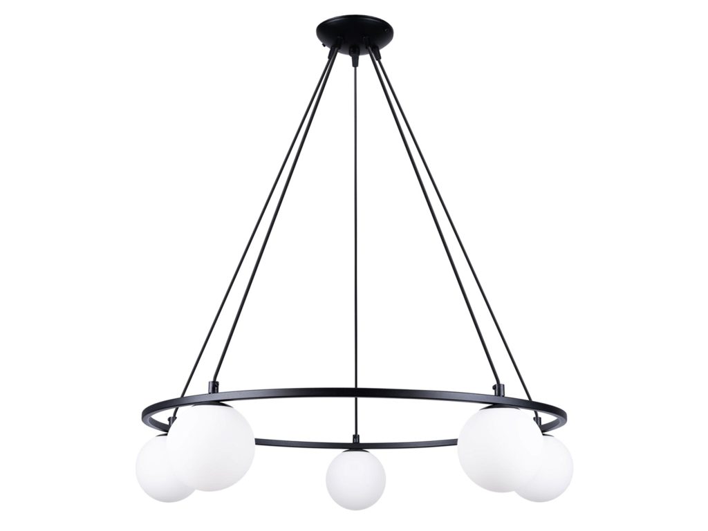 Każdy z pięciu kulistych kloszy rozprasza światło w sposób równomierny, tworząc ciepłą, przytulną atmosferę. Lampa świetnie prezentuje się zarówno nad stołem w jadalni, w centralnym punkcie salonu, jak i w wysokich holach lub wnętrzach typu open space.