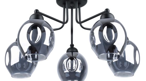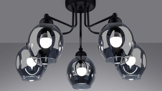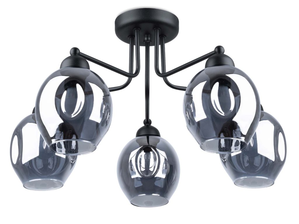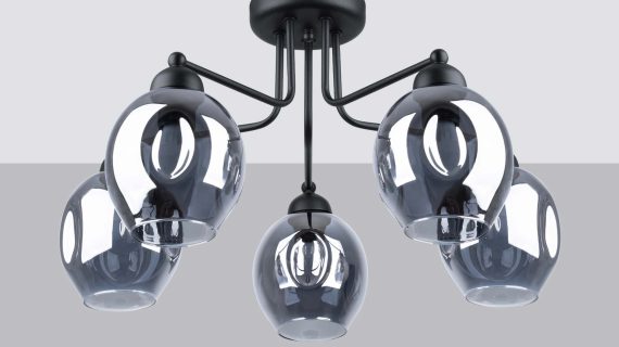 Żyrandol YUMA 5 czarny – unikalny „wgnieciony” klosz i nowoczesna elegancja do Twojego domu