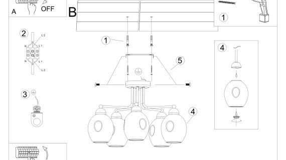 - Źródło światła: E27, 5x60W, 5x15W LED, 50-60Hz, ~220-230V. Dzięki temu z łatwością dostosujesz moc i barwę światła do swoich potrzeb, a także oszczędzisz na rachunkach za energię.