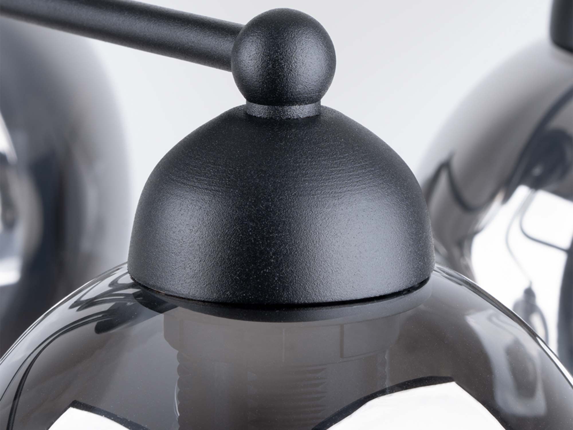 Siłą YUMA 5 jest jej szkło: unikalnie „wgniecione”, lśniące, ale nie krzykliwe. Taka struktura kloszy subtelnie rozprasza światło, dzięki czemu uzyskujesz miękki, komfortowy blask – idealny do spotkań, rozmów i codziennych rytuałów. Stalowa konstrukcja nadaje lampie stabilność i długowieczność, a czarne wykończenie podkreśla nowoczesny charakter oprawy.