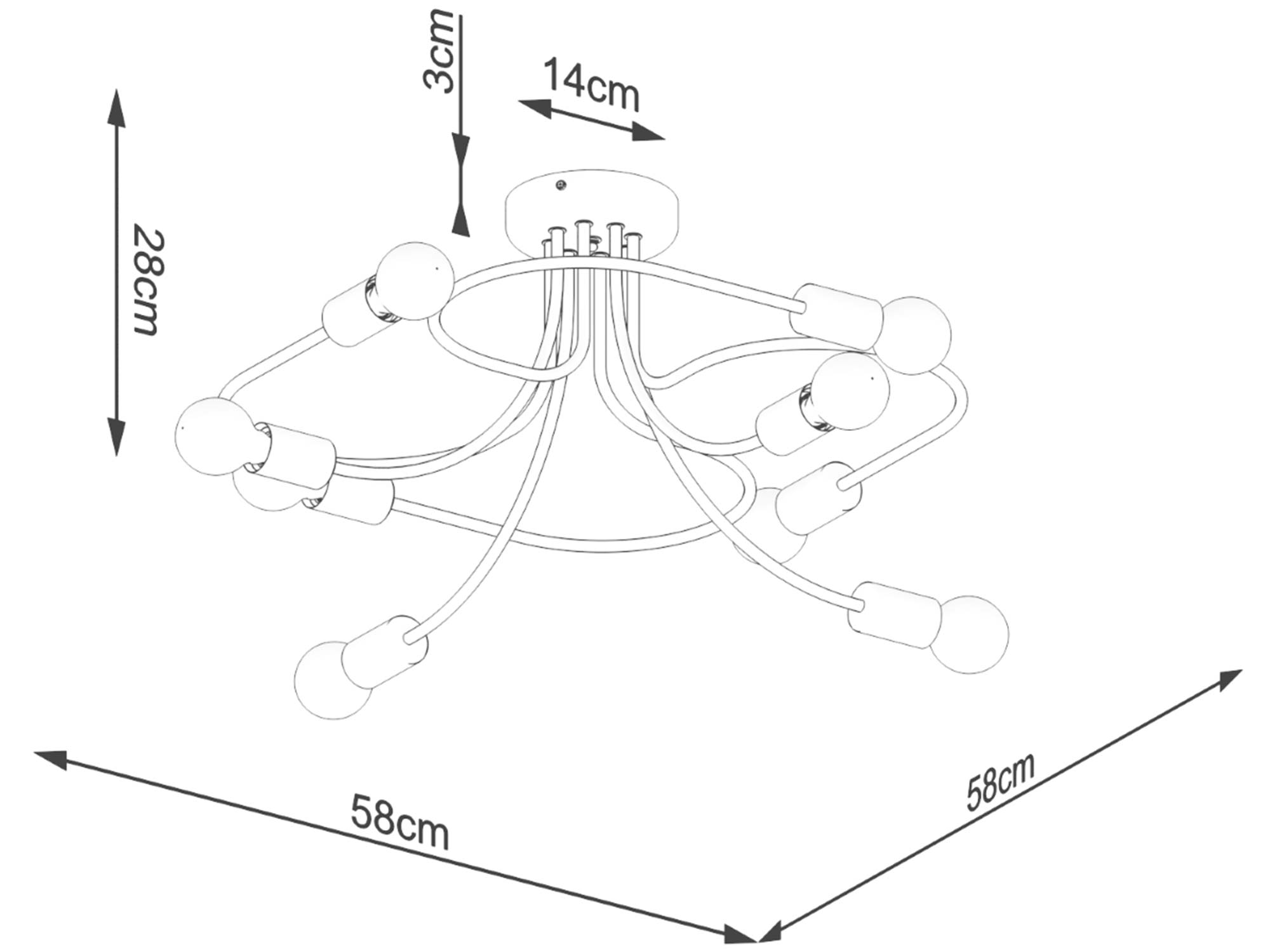 - Ilość źródeł światła: 8 × E27