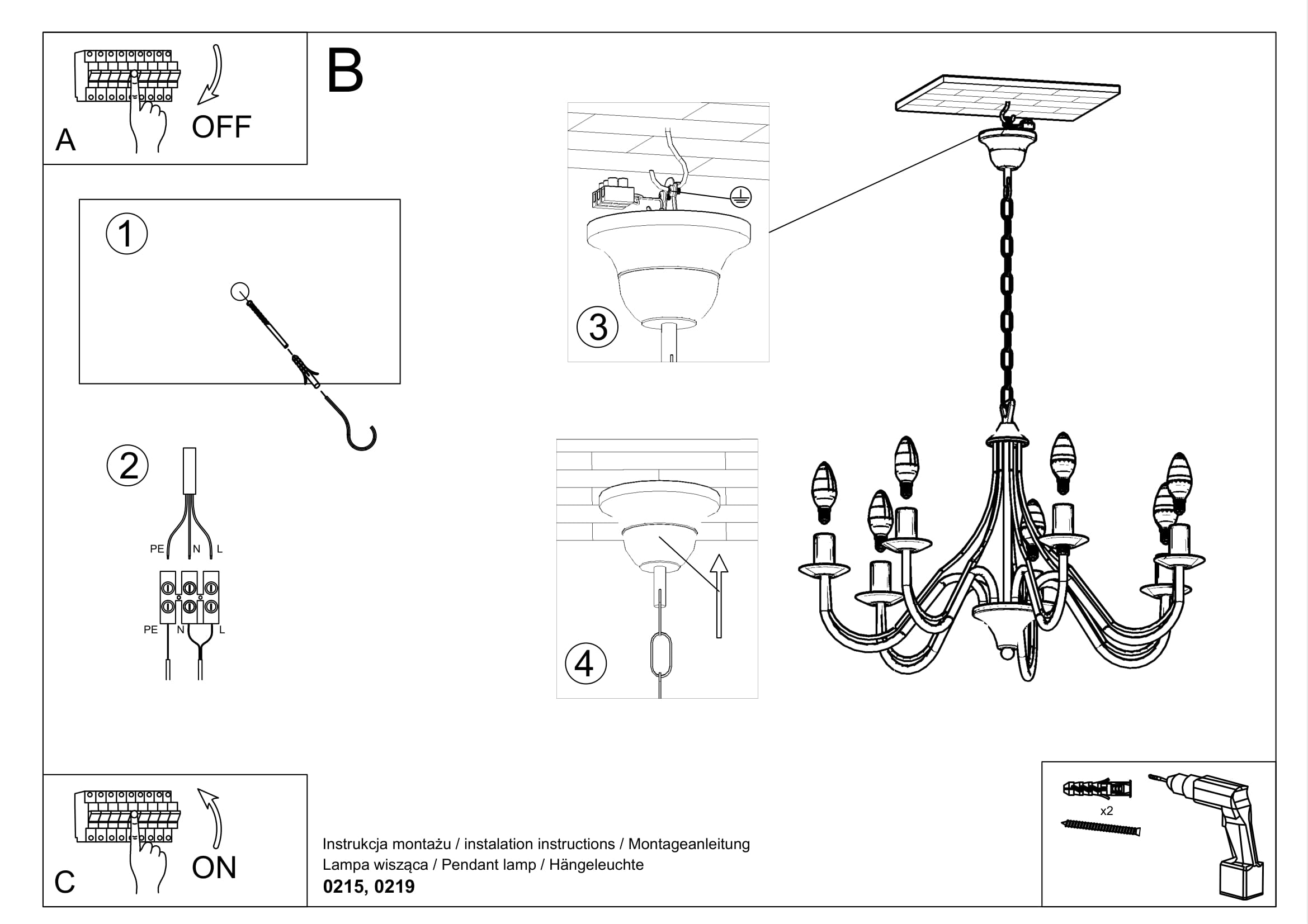 - Źródło światła: E14, 7x40W, 7x12W LED, 50-60Hz, ~220-230V. Żyrandol jest kompatybilny zarówno z tradycyjnymi żarówkami, jak i energooszczędnymi LED.