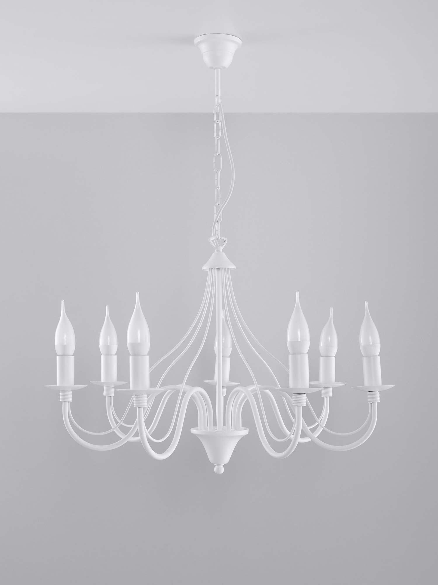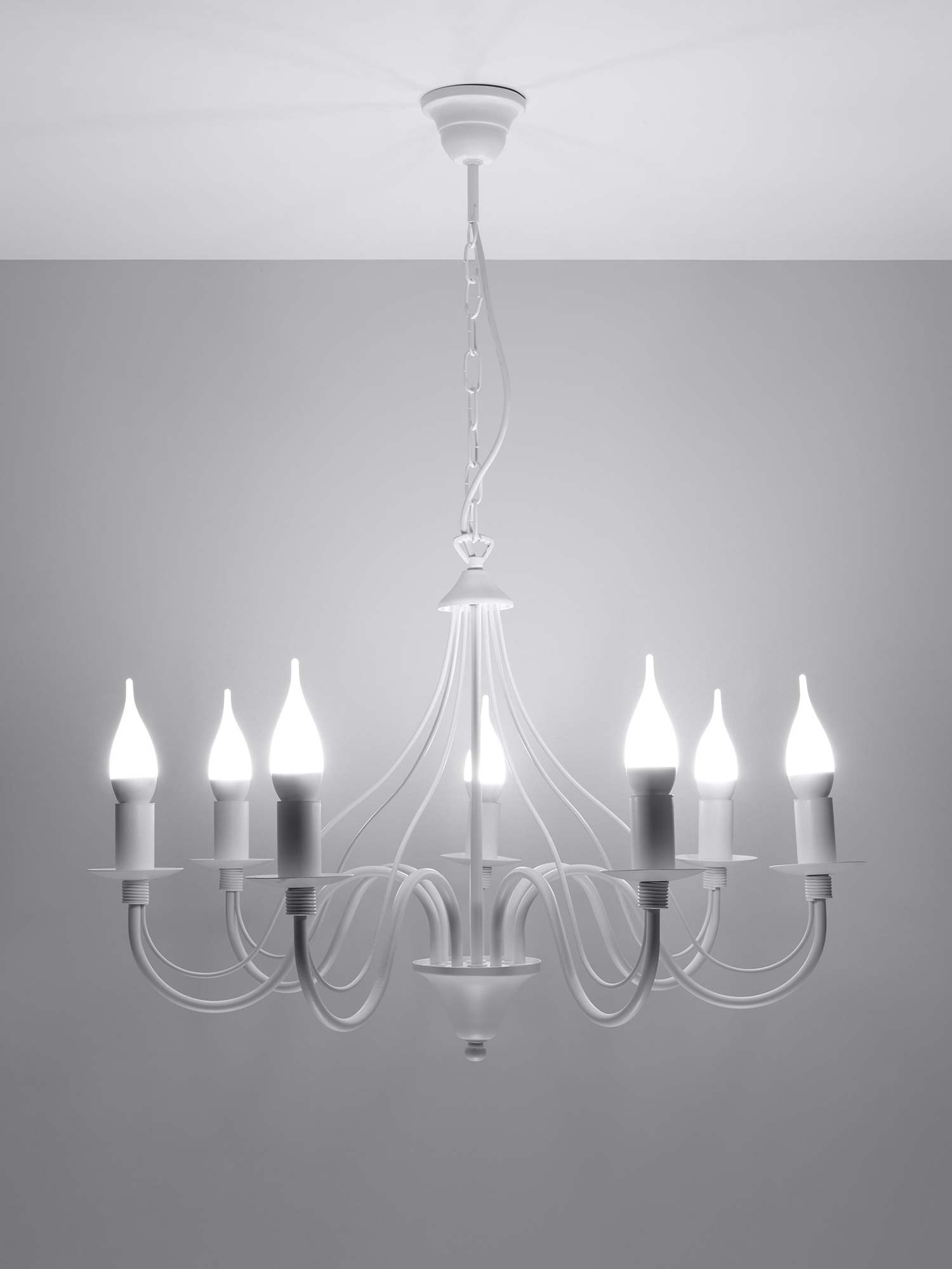Żyrandol metalowy MELUSINA 7 biały – kandelabrowa elegancja w nowoczesnym domu