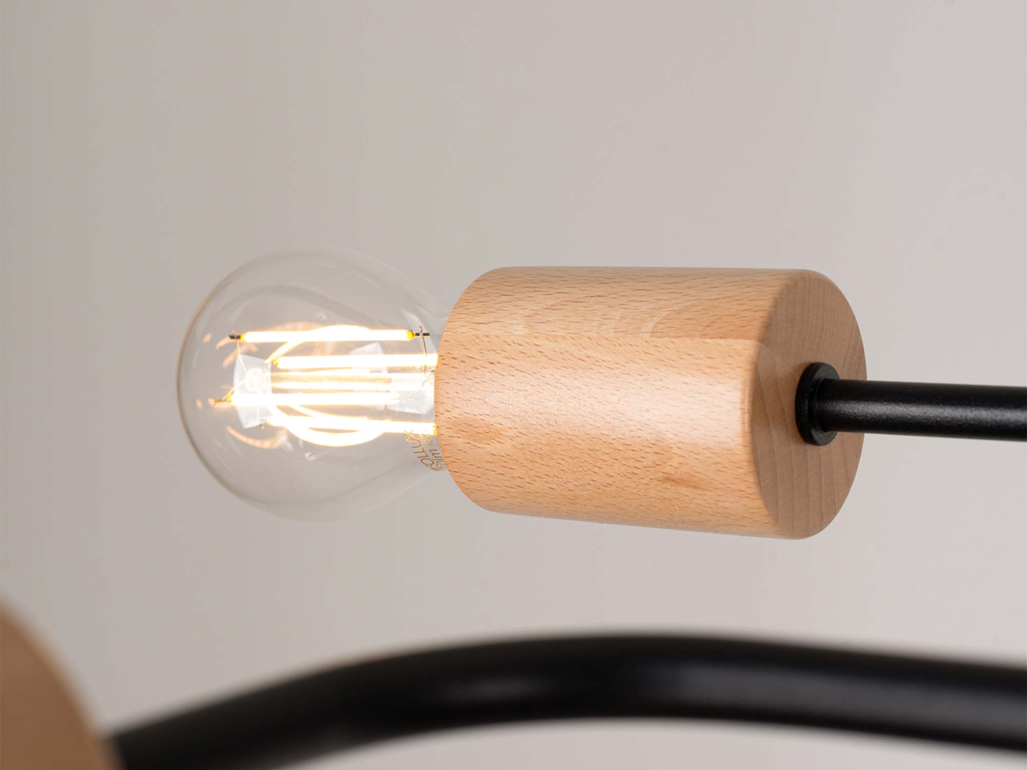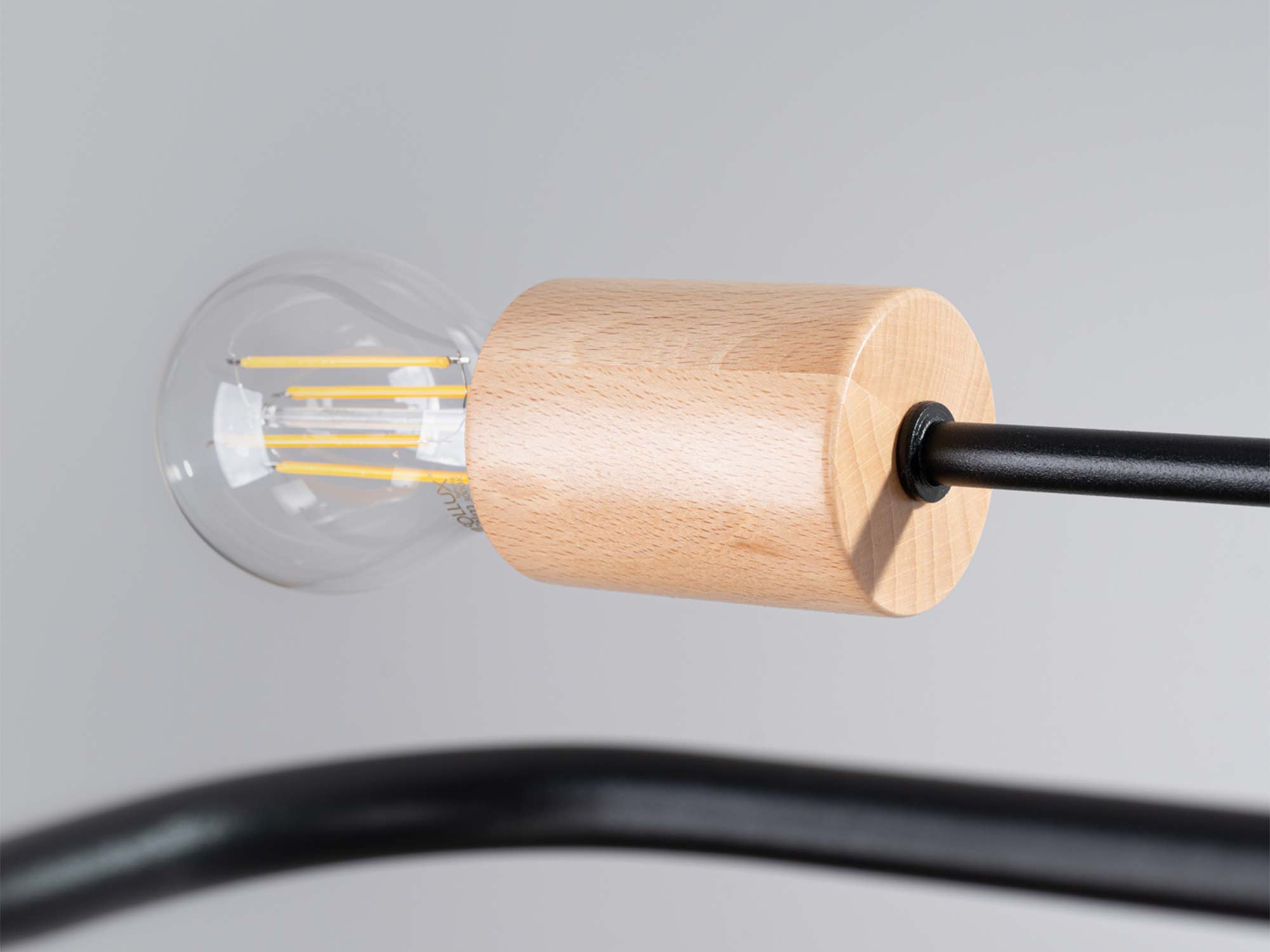 Żyrandol TIMBRA 6 przyciąga uwagę swoim industrialnym charakterem. Czerń metalu nadaje mu surowego, nowoczesnego stylu, a drewniane elementy w naturalnym odcieniu wprowadzają ciepło i subtelną elegancję. To właśnie dzięki tej kontrastowej kompozycji lampa staje się wyjątkowa.