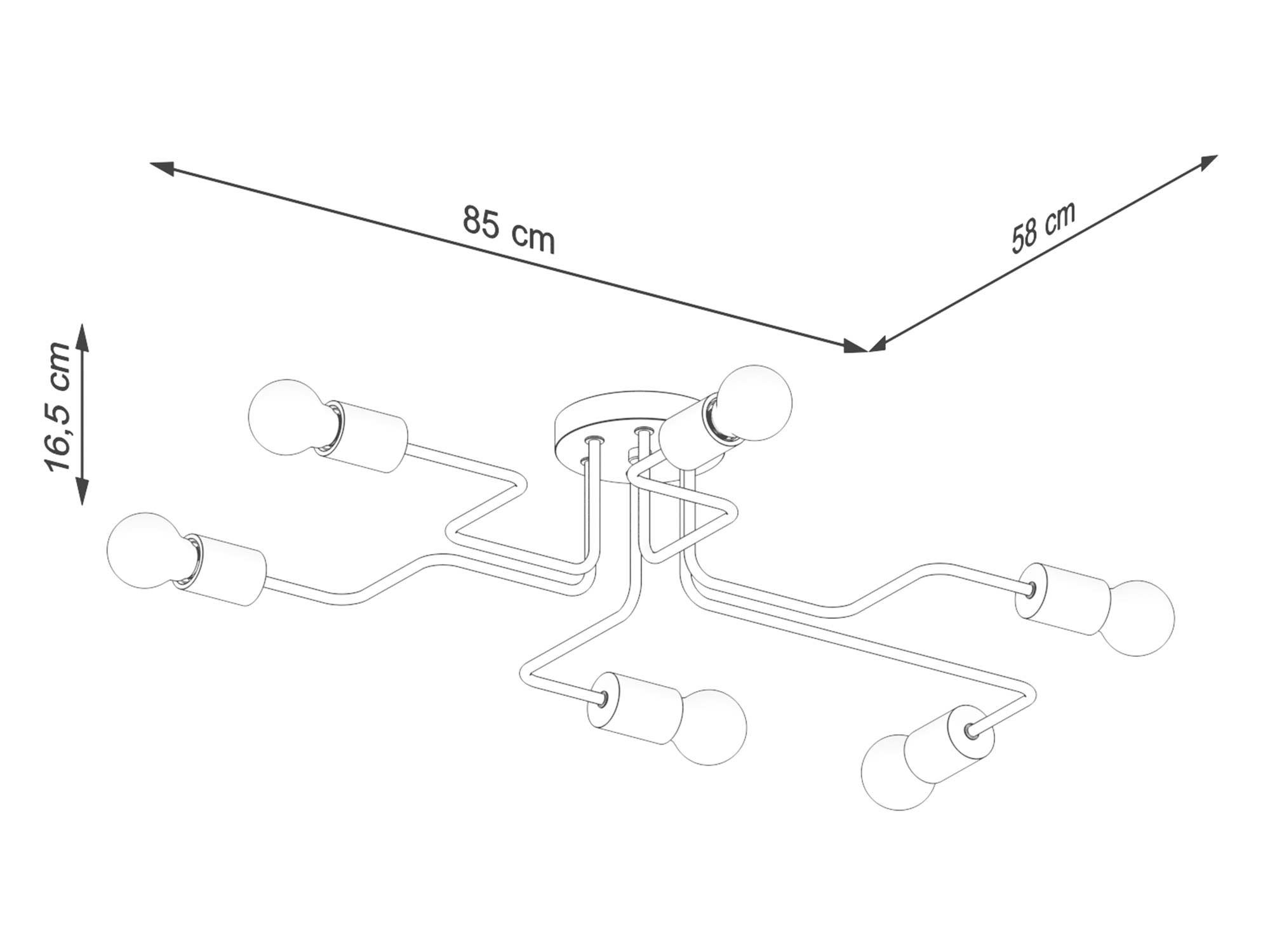 Wymiary 85/58/16,5 cm sprawiają, że żyrandol doskonale wypełnia przestrzeń, nie przytłaczając jej, a jednocześnie nadaje aranżacji wyjątkowego charakteru. Jego uniwersalna forma pozwala dopasować go do salonu, jadalni, biura, a nawet nowoczesnej sypialni.