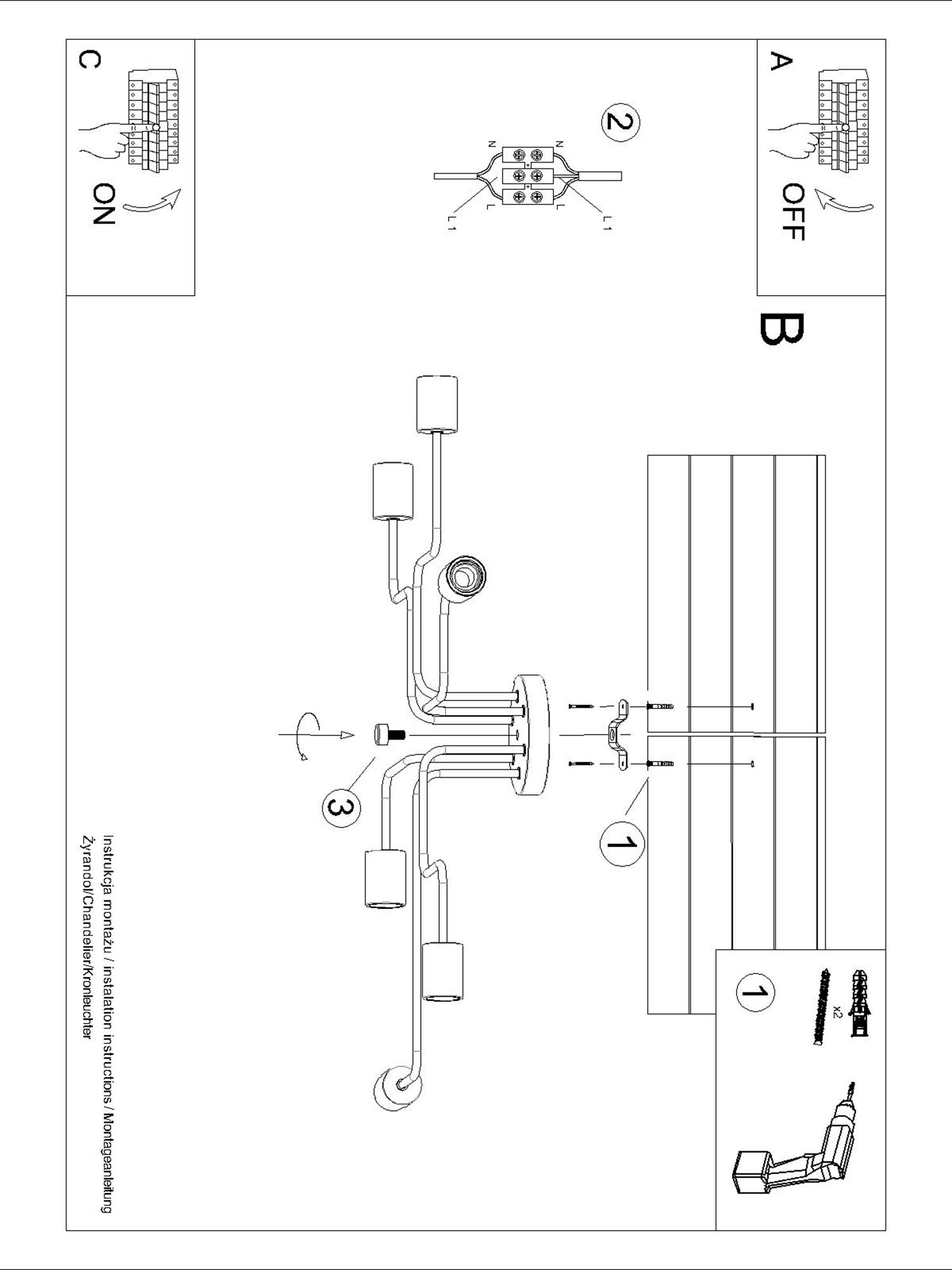 Źródło światła: E27, 6x max 15W LED, ~230V, 50Hz, IP20, klasa ochronności II