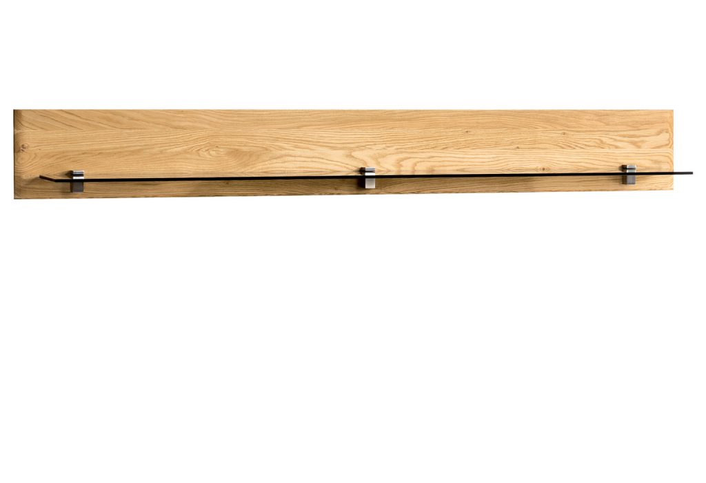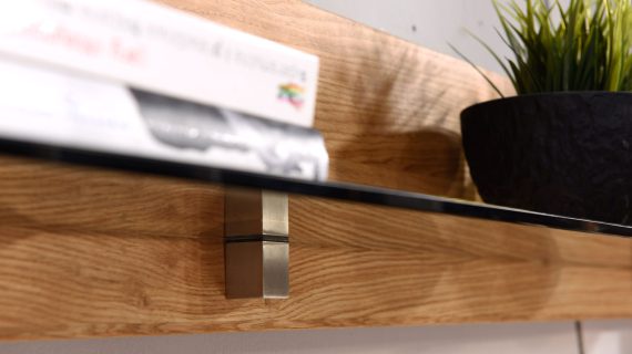 Prosta i elegancka półka Osaka zrobiona z litego drewna dębowego najlepszego gatunku. Co więcej szklany element dodaje jej klasy i stylu. Panel ścienny drewniany bez wątpienia dopasuje się do wystroju każdego salonu czy pokoju dziennego. Co ważniejsze stateczna forma oraz eleganckie, nowoczesne wykończenie sprawią, że Osaka szykownie upiększy niejedno pomieszczenie. Panel ścienny drewniany znakomicie sprawdzi się do eksponowania zdjęć czy pamiątek oraz przechowywania książek.