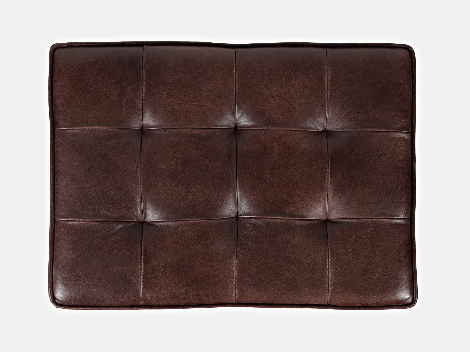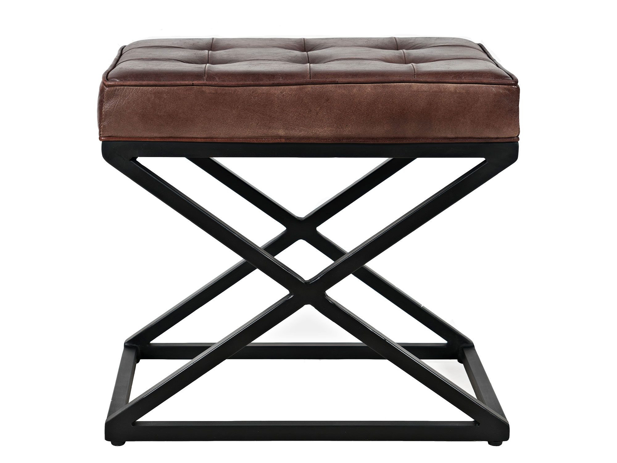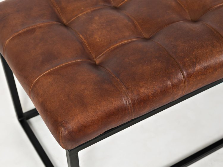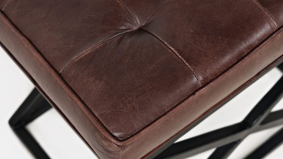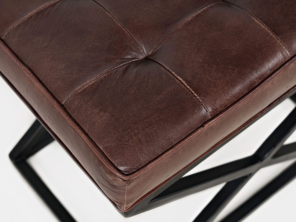Eleganckie siedzisko tapicerowane w naturalnej skórze w kolorze ciemnej sieny, idealnie komponujące się z industrialnym czarnym stelażem. Dzięki klasycznemu pikowaniu, siedzisko wyróżnia się subtelnym stylem, który świetnie pasuje do nowoczesnych i industrialnych wnętrz. Wygodna forma kwadratowej podstawy oraz charakterystyczne boki w kształcie litery X zapewniają stabilność, a zarazem estetyczny wygląd, który będzie doskonałym dopełnieniem Twojej przestrzeni. Doskonały wybór do biura, salonu czy przestrzeni komercyjnych, łączący komfort z wyjątkowym designem.