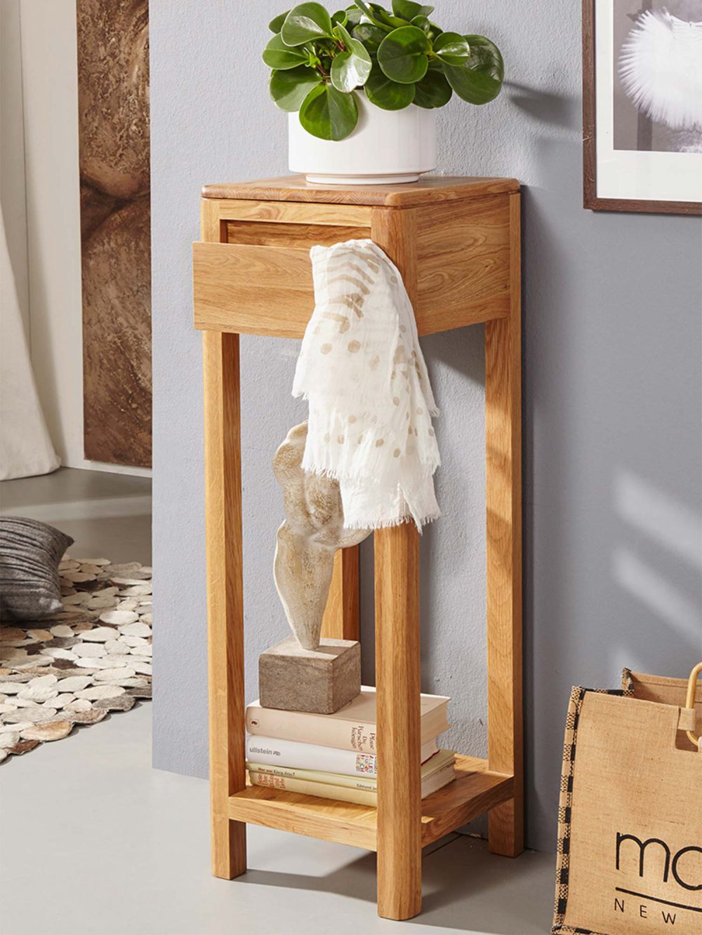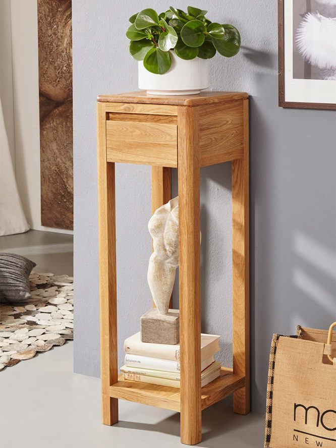 Klasyczny stolik na kwiaty II Bagan – dębowy akcent, który porządkuje i upiększa Twoje wnętrze