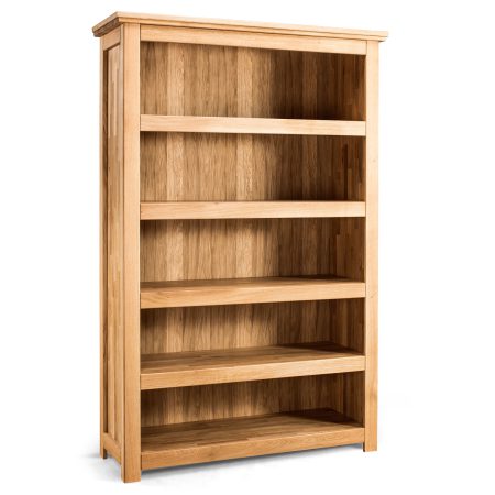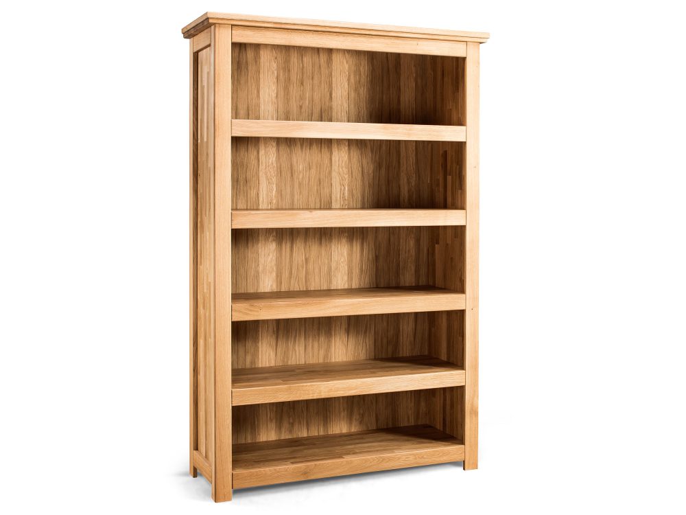 Co najważniejsze uniwersalna naturalna kolorystyka dębu świetnie wkomponuje się do aranżacji różnego typu. Mebel wykonano w całości z litego drewna dębowego, dzięki czemu przetrwa on długie lata. Co więcej poszukując dużego regału na książki do domowego gabinetu albo biblioteczki warto wybrać właśnie ten mebel, który spełni swoją funkcję, a do tego ozdobi wnętrze. Ponadto delikatny klasyczny charakter dodaje uroku, a stylowe zwieńczenie przykuwa uwagę. Dodatkowo mebel umieszczony został na solidnych wysokich nóżkach nadających mu lekkości.