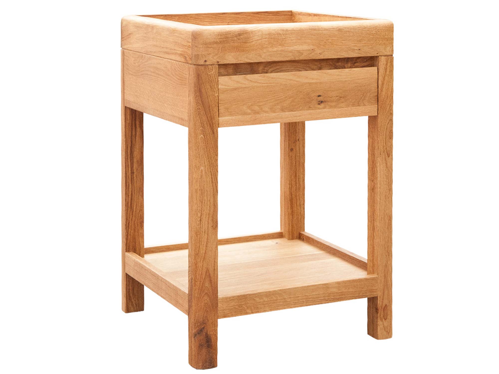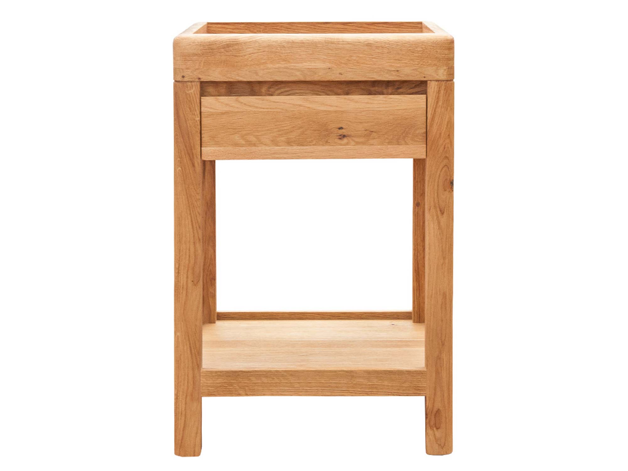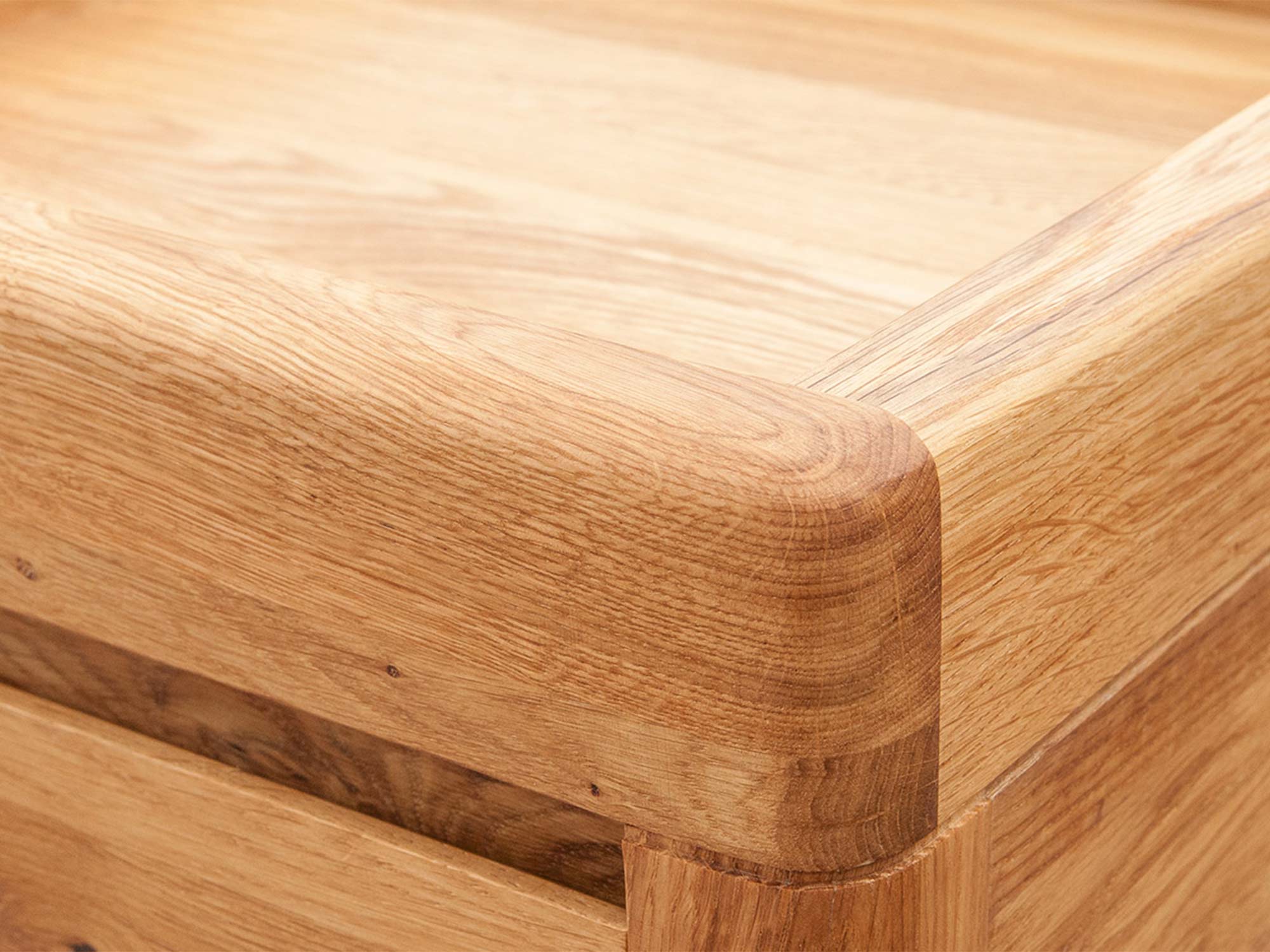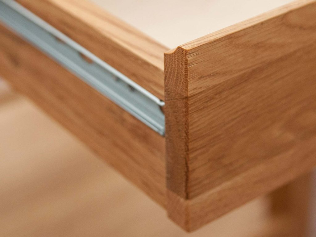 Argumenty: Konstrukcja z litego drewna dębowego zapewnia stabilność i długowieczność. Blat i półka mają ochronne ranty, które zatrzymują drobne przedmioty, a pojemna szuflada porządkuje to, co lubi znikać: klucze, dokumenty, ładowarki. Prowadnice z cichym domykiem sprawiają, że szuflada pracuje płynnie i bezszelestnie – koniec z trzaskaniem i wypadaniem zawartości przy pośpiechu.