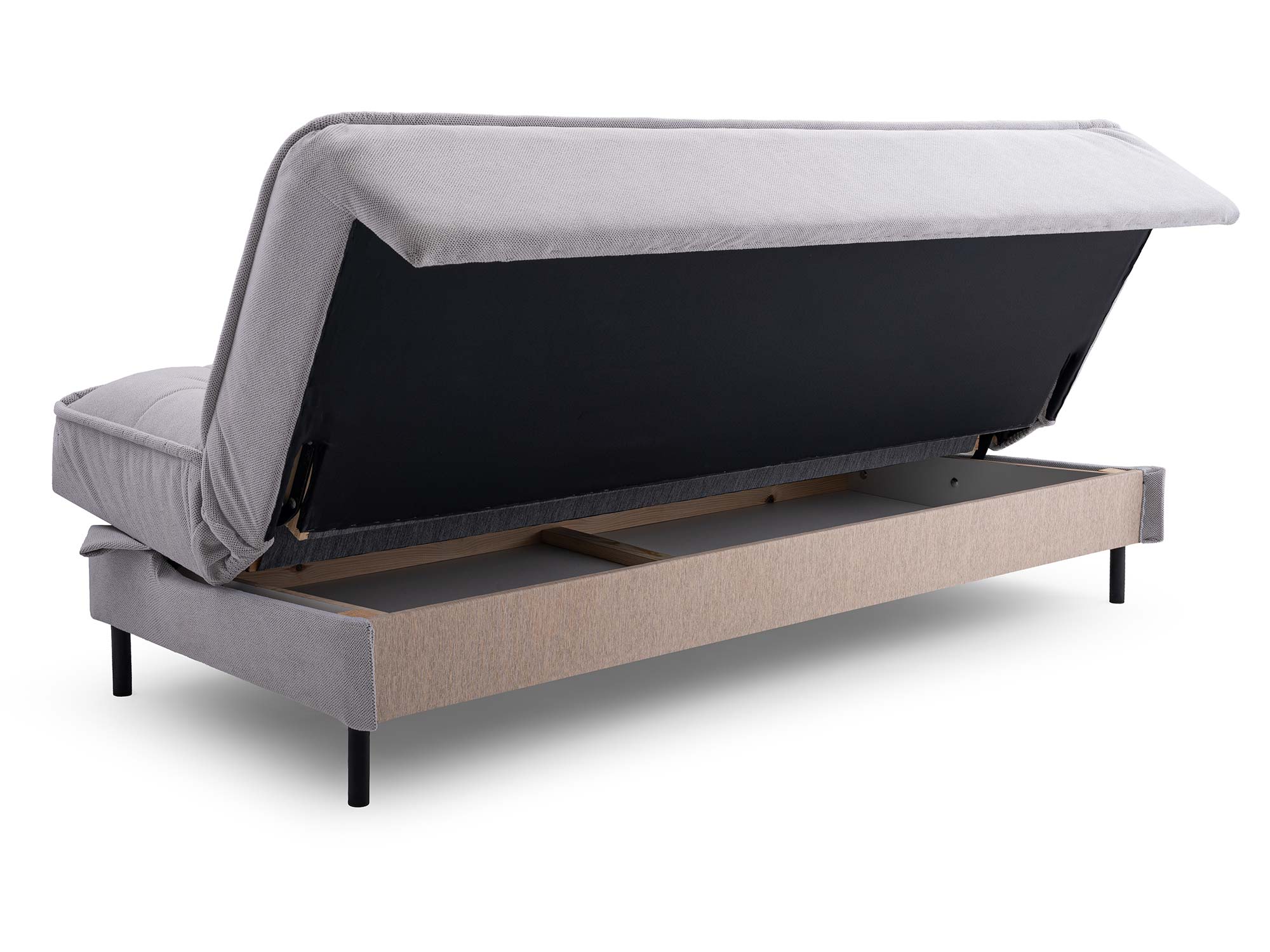 Dzięki mechanizmowi click-clack przekształcenie sofy w łóżko zajmuje zaledwie chwilę. To rozwiązanie, które docenisz szczególnie wtedy, gdy niespodziewanie odwiedzą Cię goście lub gdy potrzebujesz dodatkowego miejsca do spania w codziennym użytkowaniu. Powierzchnia spania o wymiarach 193 × 100 cm sprawia, że sofa doskonale sprawdzi się w roli pełnowartościowego łóżka dla jednej osoby dorosłej lub jako komfortowe rozwiązanie dla pary.