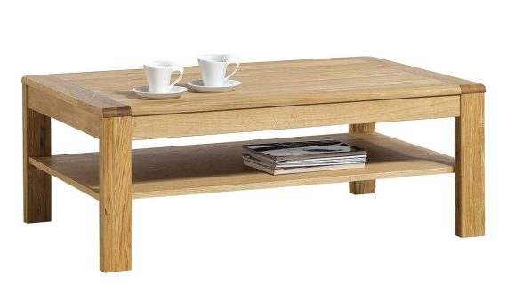 Ława do salonu drewniana posiada obszerną półkę pod blatem, która świetnie nadaje się do chowania książek, gazet, czasopism lub pilota lub innych drobiazgów. Ponadto na blacie z powodzeniem znajdzie się miejsce dla filiżanek z kawą i kubków z gorącą herbatą, a także dla talerzyka z ciastem. Z pewnością drewniany stolik cechuje nowoczesny styl oraz eleganckie wykończenie. Co więcej do jego produkcji wykorzystano surowców wysokiej jakości takich jak lite drewno dębowe z elementami fornirowanymi.