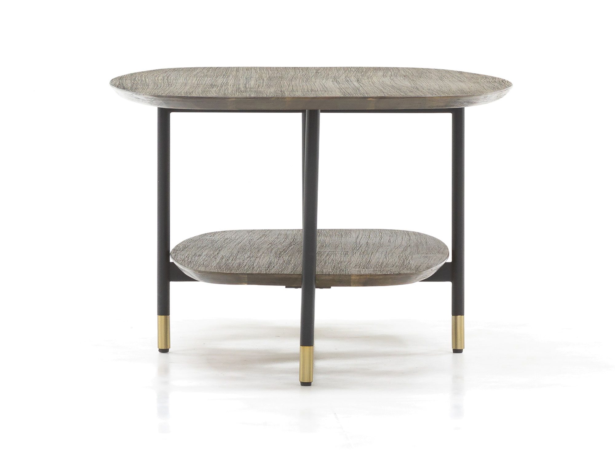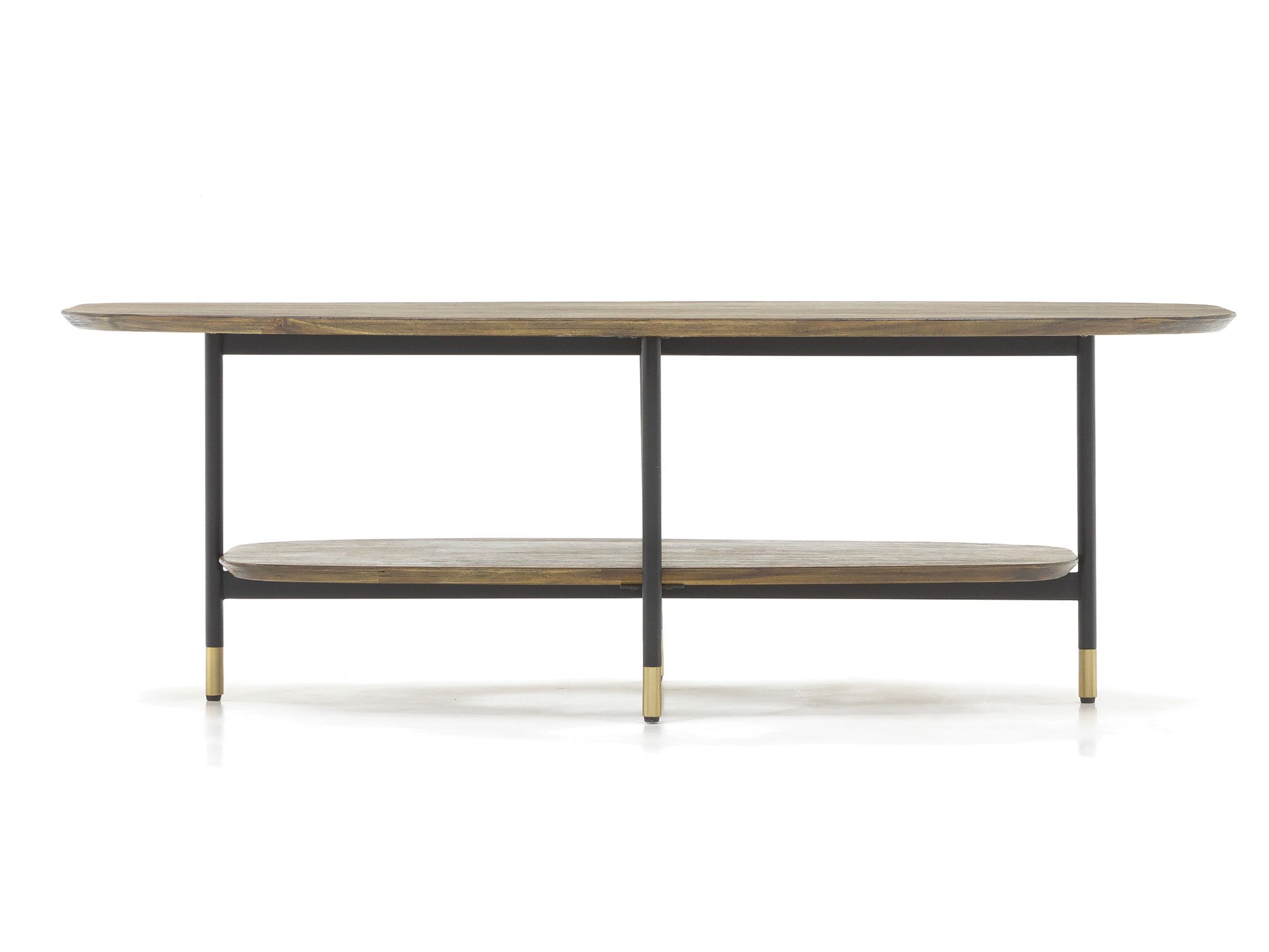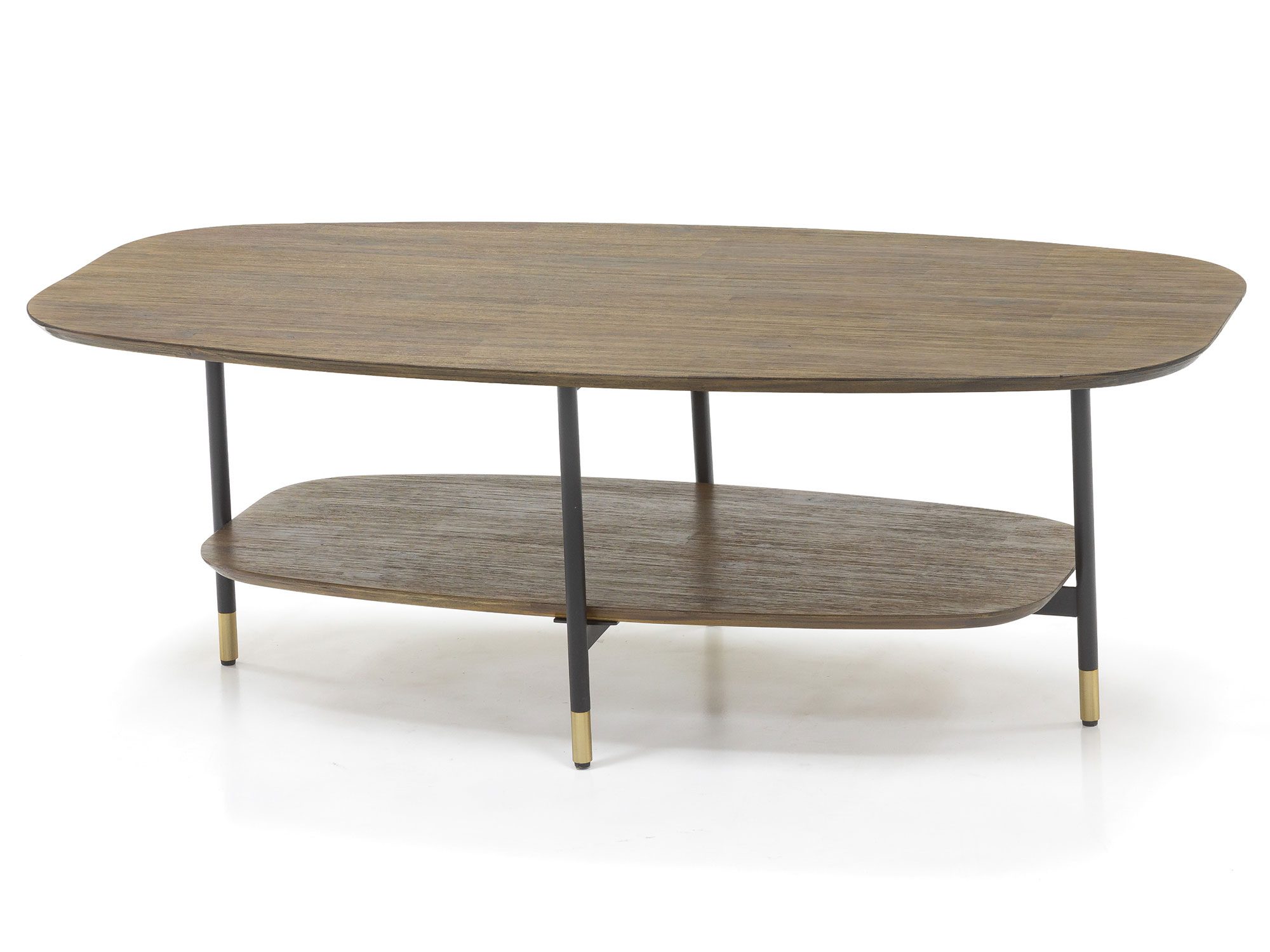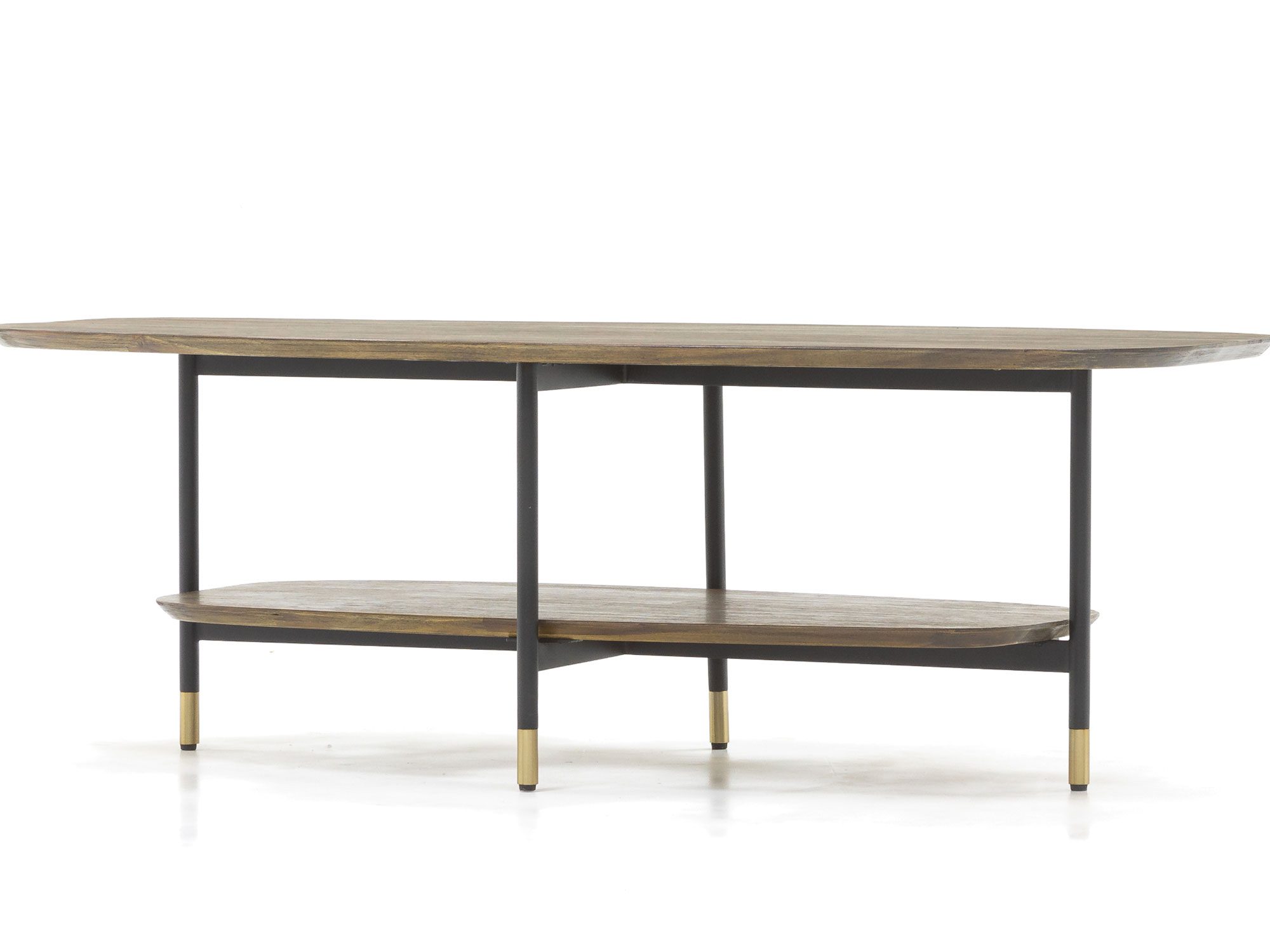 Stolik kawowy drewniany z półką i złotymi akcentami – Enigma