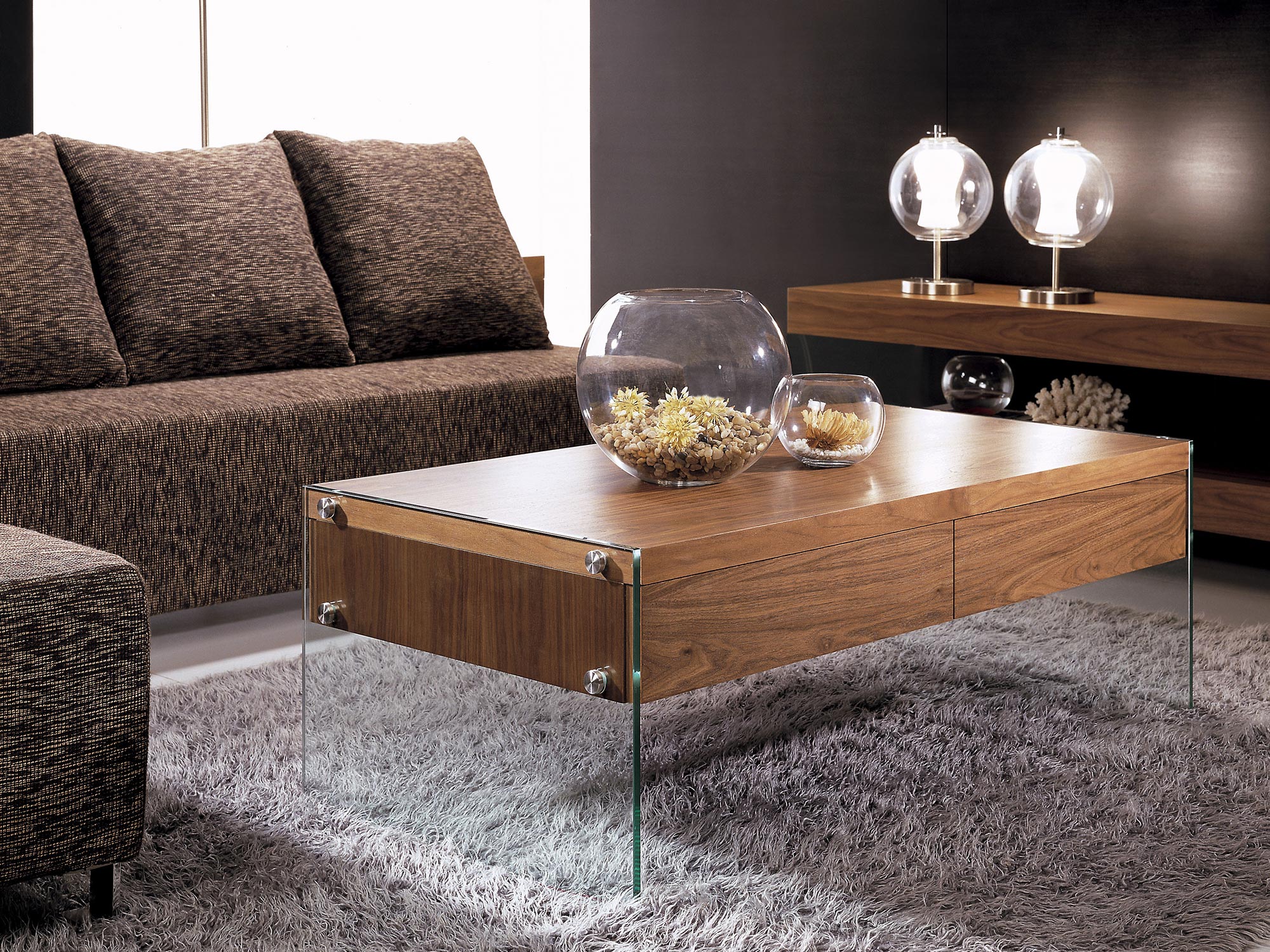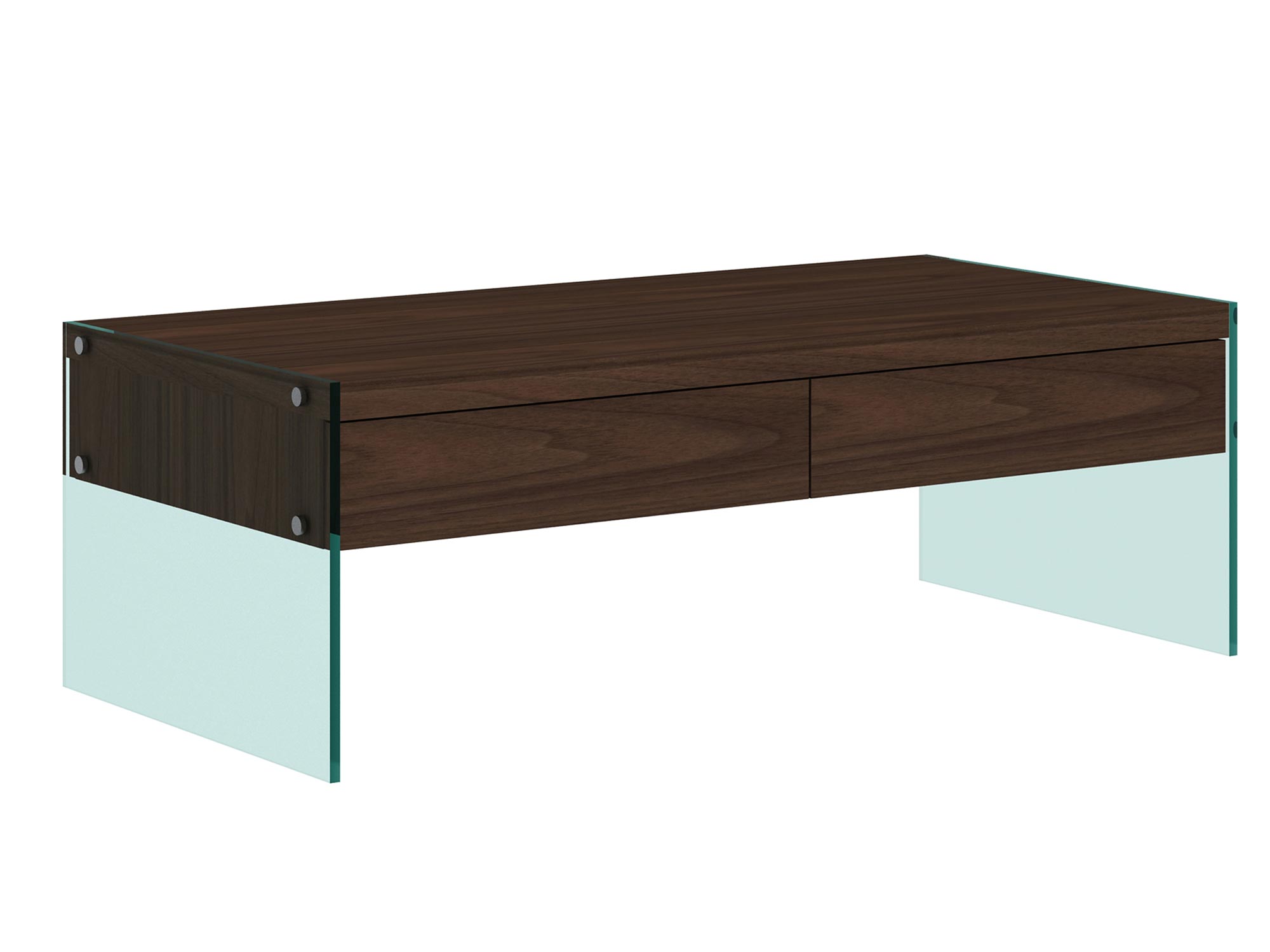 Stolik Kawowy Orzechowy z Nogami ze Szkła Hartowanego – Tribeca