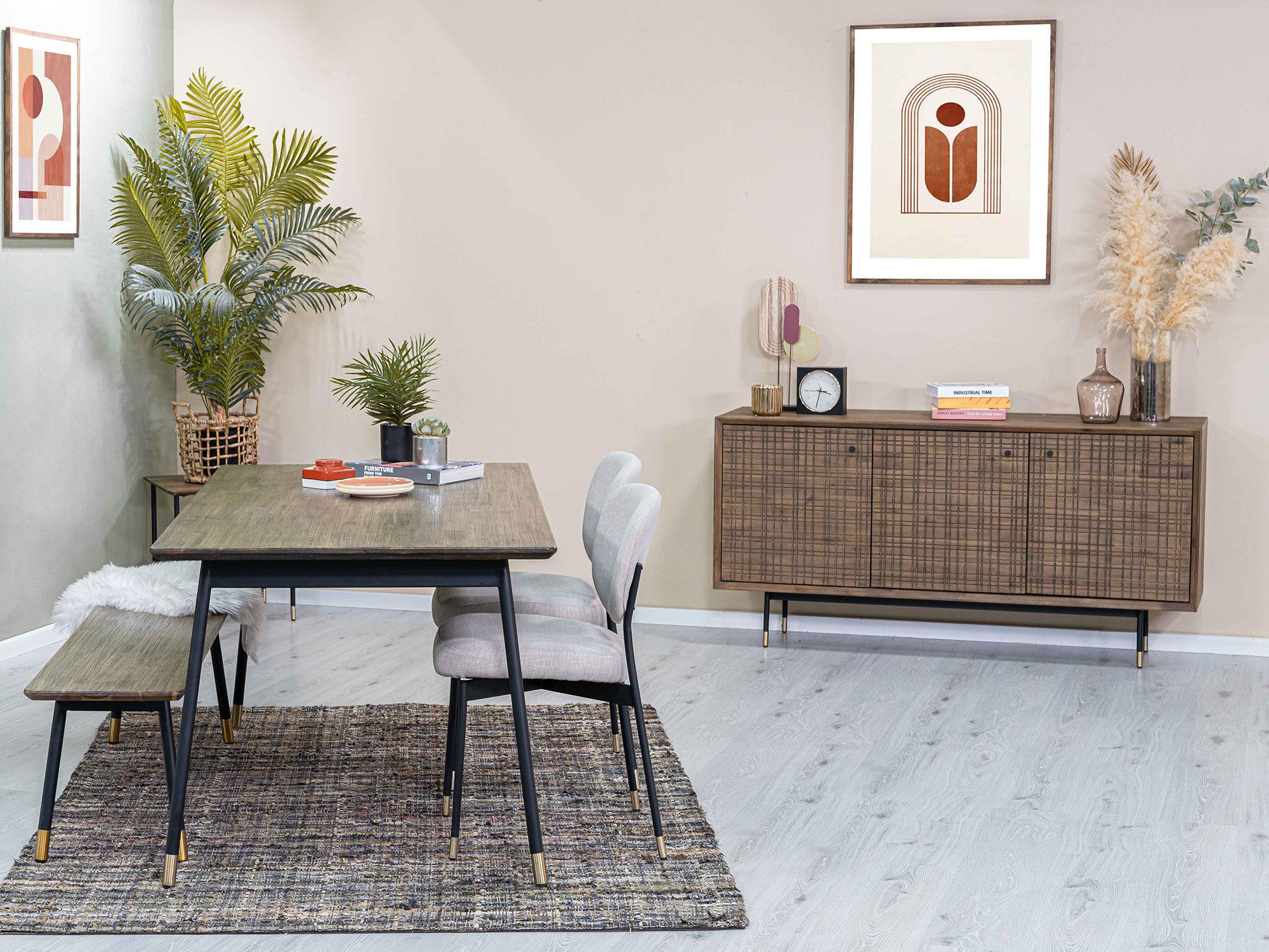 - Kolor: Jasnobrązowy (drewno), czarny półmat (metalowe nogi), złote akcenty