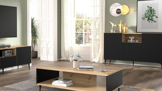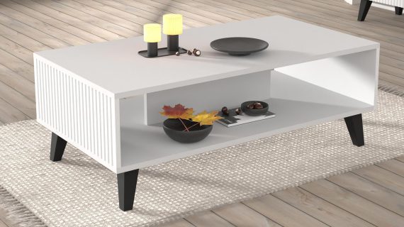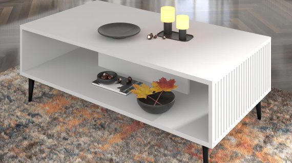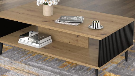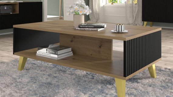 Klasyczny Stolik Kawowy Navia do Salonu oferuje wiele praktycznych rozwiązań. Dzięki wymiarom 90/60/43 CM idealnie sprawdzi się w różnych pomieszczeniach. Blat stolika jest wystarczająco duży, aby pomieścić filiżanki kawy, książki czy dekoracje, co pomaga utrzymać porządek i organizację w salonie. Funkcjonalna półka pod blatem zapewnia dodatkowe miejsce do przechowywania.
