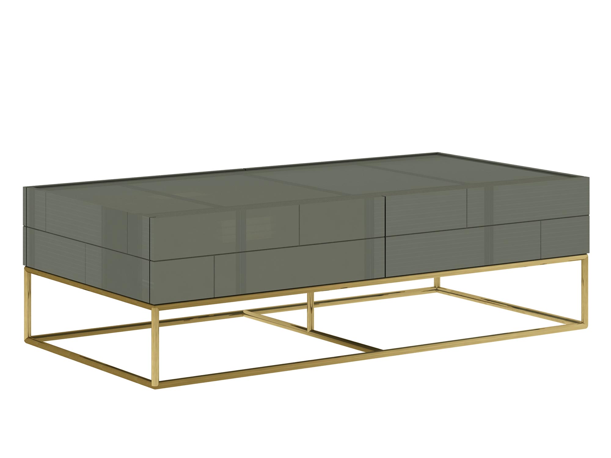 „Blossom Grove” to ława, która wyróżnia się elegancją i nowoczesnym stylem. Blat w kolorze cementowej zieleni o wysokim połysku doskonale łączy się z nogami w kolorze złota, wykonanymi z wysokiej jakości stali nierdzewnej. Korpus z płyty MDF o wysokim połysku zapewnia trwałość i łatwość w utrzymaniu czystości. Fronty 3D w połączeniu z minimalistyczną formą bryły tworzą harmonijną całość, która pasuje do wielu wnętrz. Ława jest również wyposażona w system soft close, co zapewnia płynne i ciche otwieranie i zamykanie.