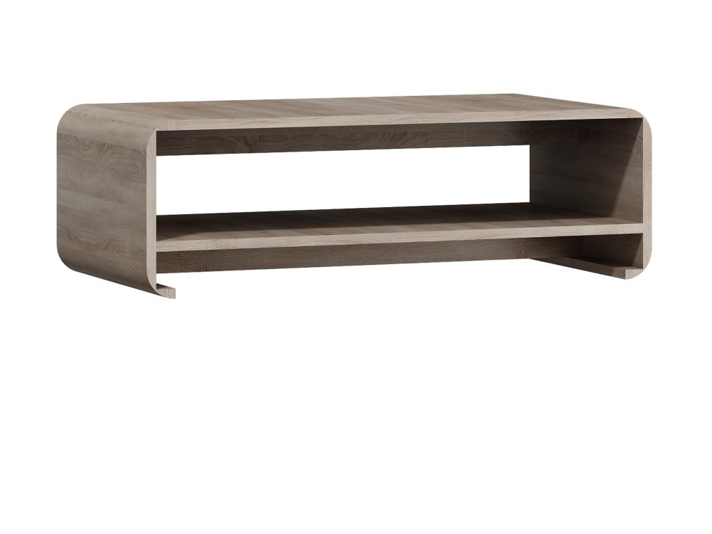 Stolik Kawowy do Salonu LINK w popularnym wybarwieniu. Mebel ten wykonany jest z płyty meblowej o wzmocnionej odporności na wysoką temperaturę, wilgoć oraz zarysowania, dzięki czemu zdecydowanie dłużej zachowa idealny wygląd. Atutem tej kolekcji jest również mnogość dostępnych elementów pozwalająca na dogodne umeblowanie Twojego domu. Meble wyróżniają się zaoblonymi kształtami brył oraz charakterystycznie frezowanymi ozdobnie frontami drzwi. Elegancki i minimalistyczny stolik kawowy z kolekcji LINK wyposażony został w funkcjonalną półkę pod blatem. Stolik doskonale sprawdzi się w niewielkich pokojach dziennych.