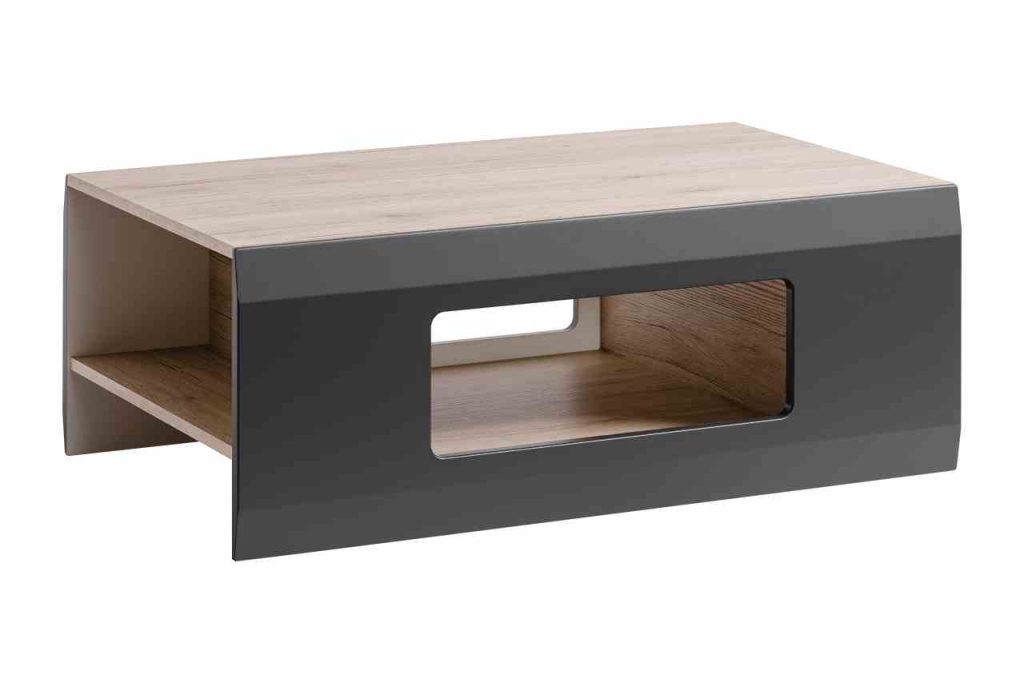 Ława do salonu posiada obszerną półkę pod blatem, która w rezultacie świetnie nadaje się do chowania książek, gazet, czasopism oraz pilota lub innych drobiazgów. Na powierzchni blatu bez problemu znajdzie się miejsce dla filiżanek z kawą i kubków z gorącą herbatą choć zapewne dla talerzyka z ciastem również. Dodatkowo ławę wyróżnia modernistyczny styl i eleganckie wykończenie. Do jego wytworzenia wykorzystano materiałów wysokiej jakości na przykład płyt laminowanych czy drewna a dodatkowo zabezpieczono obrzeżem ABS, które sprawia, że jest on odporny na zniszczenia, wzmacnia trwałość i zabezpiecza przed wilgocią, a także uszkodzeniami mechanicznymi.