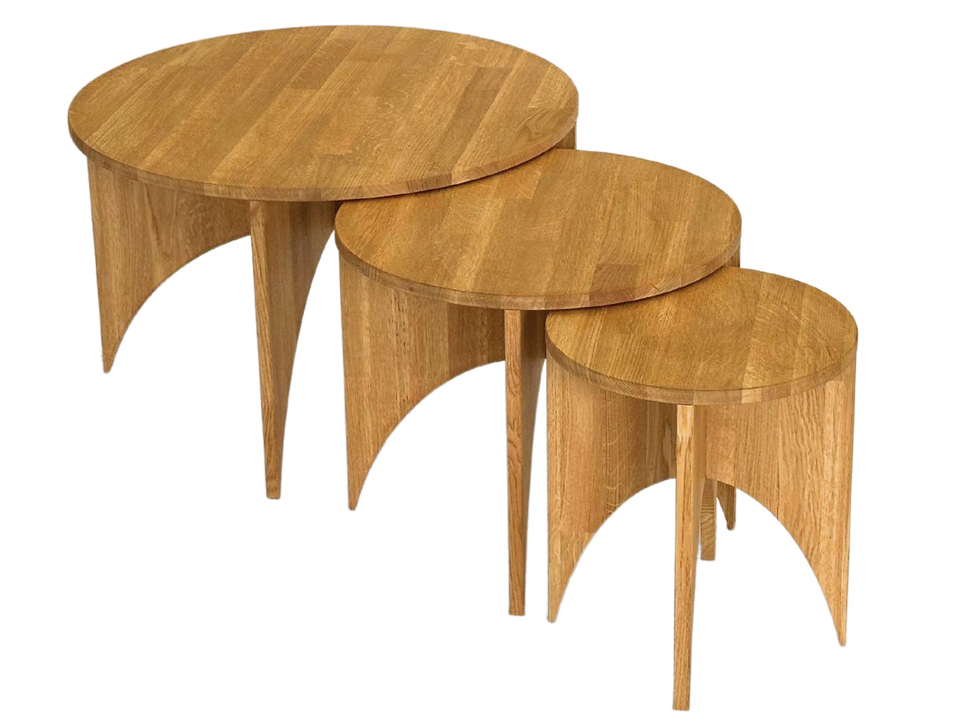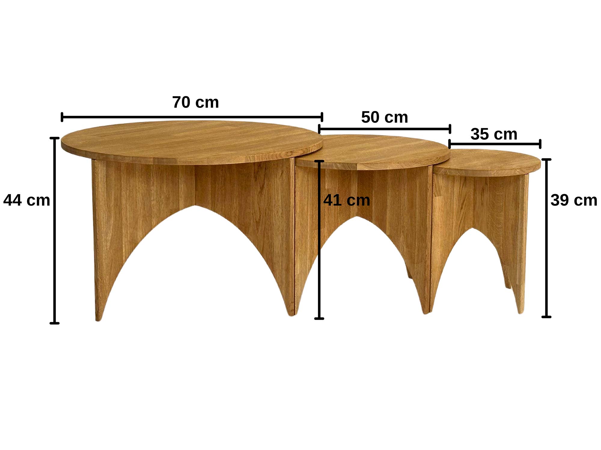 Zestaw okrągłych stolików dębowych 3w1 Taverno
