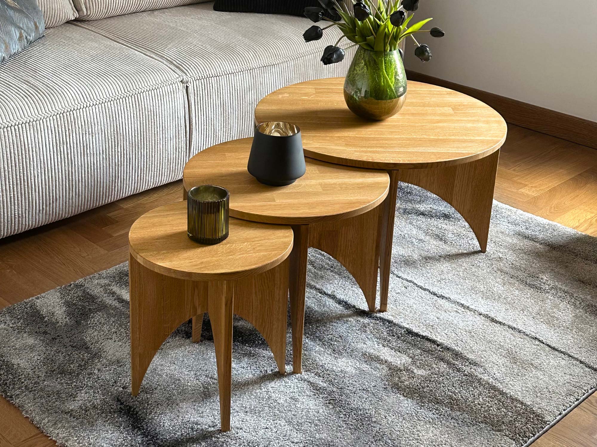 Zestaw okrągłych stolików dębowych 3w1 Taverno – naturalne piękno i funkcjonalność