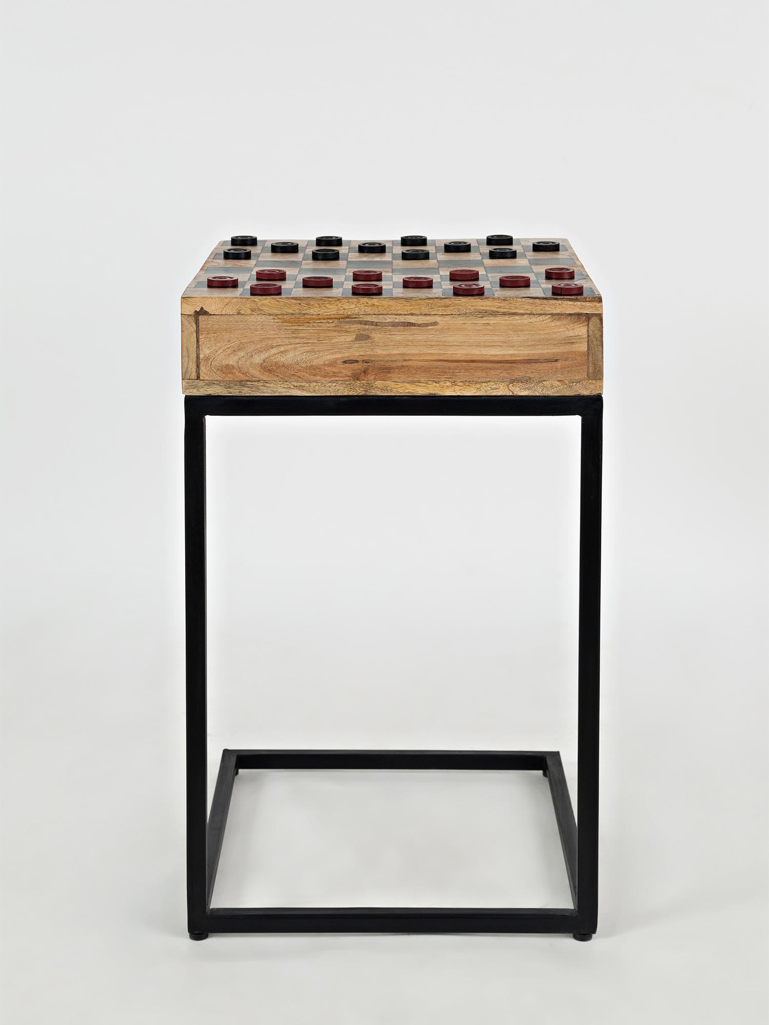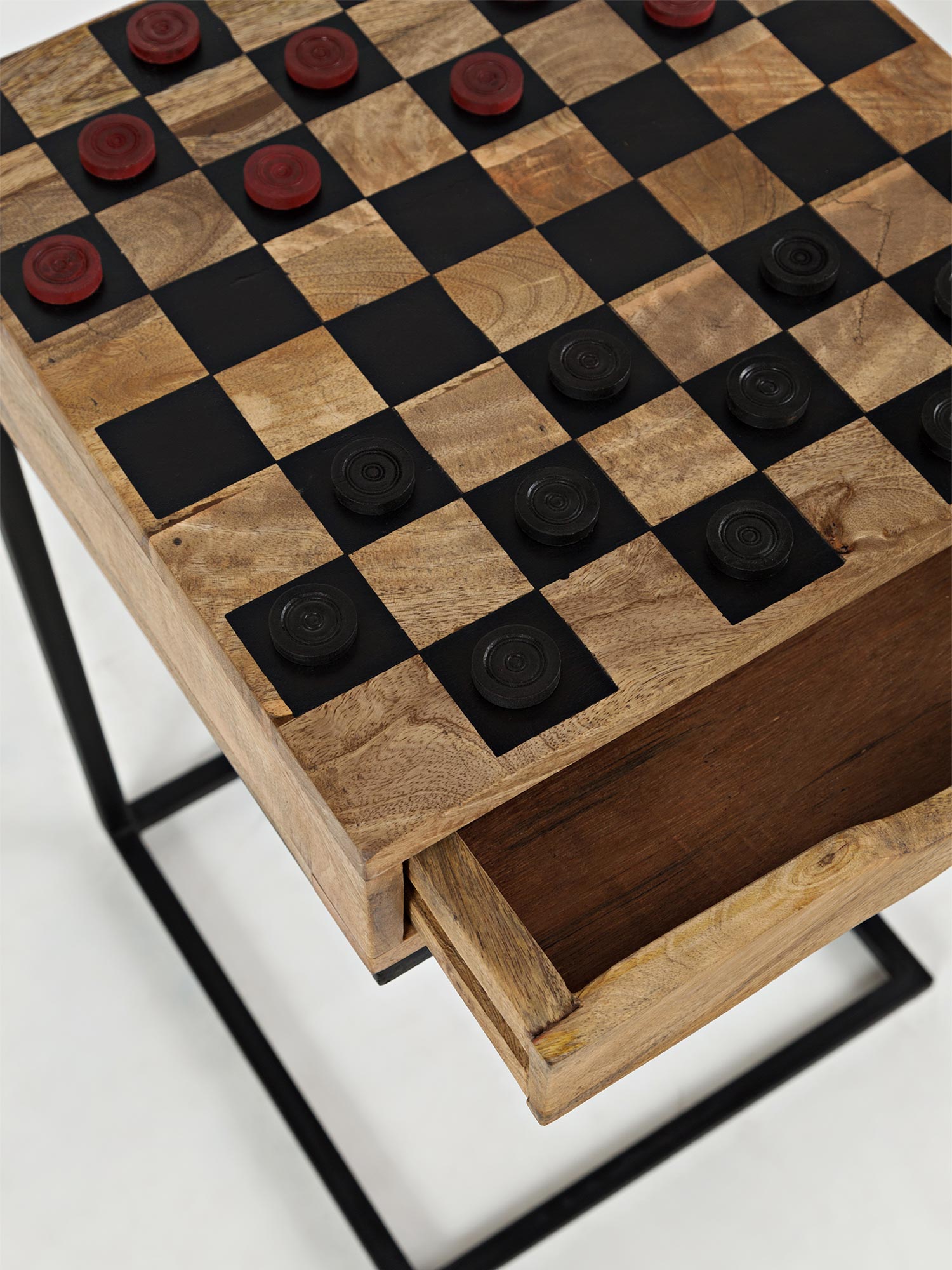 Stolik pomocniczy z blatem do gry w warcaby i metalową podstawą