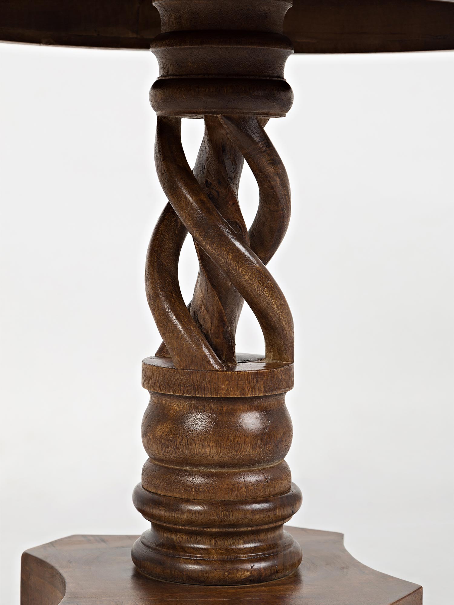 Stolik Drewniany z Ręcznie Rzeźbioną Nogą w Kształcie Spirali – Avola