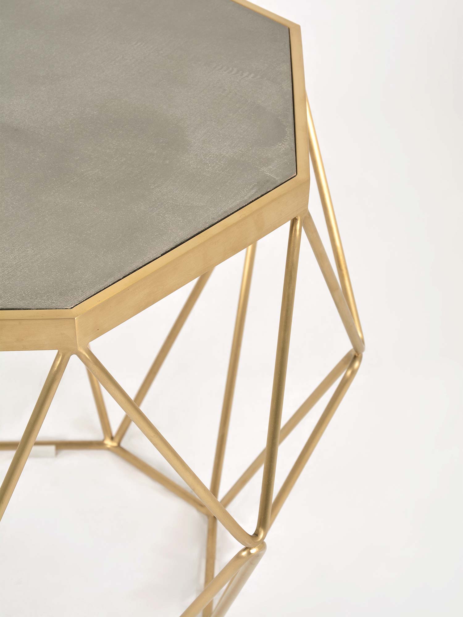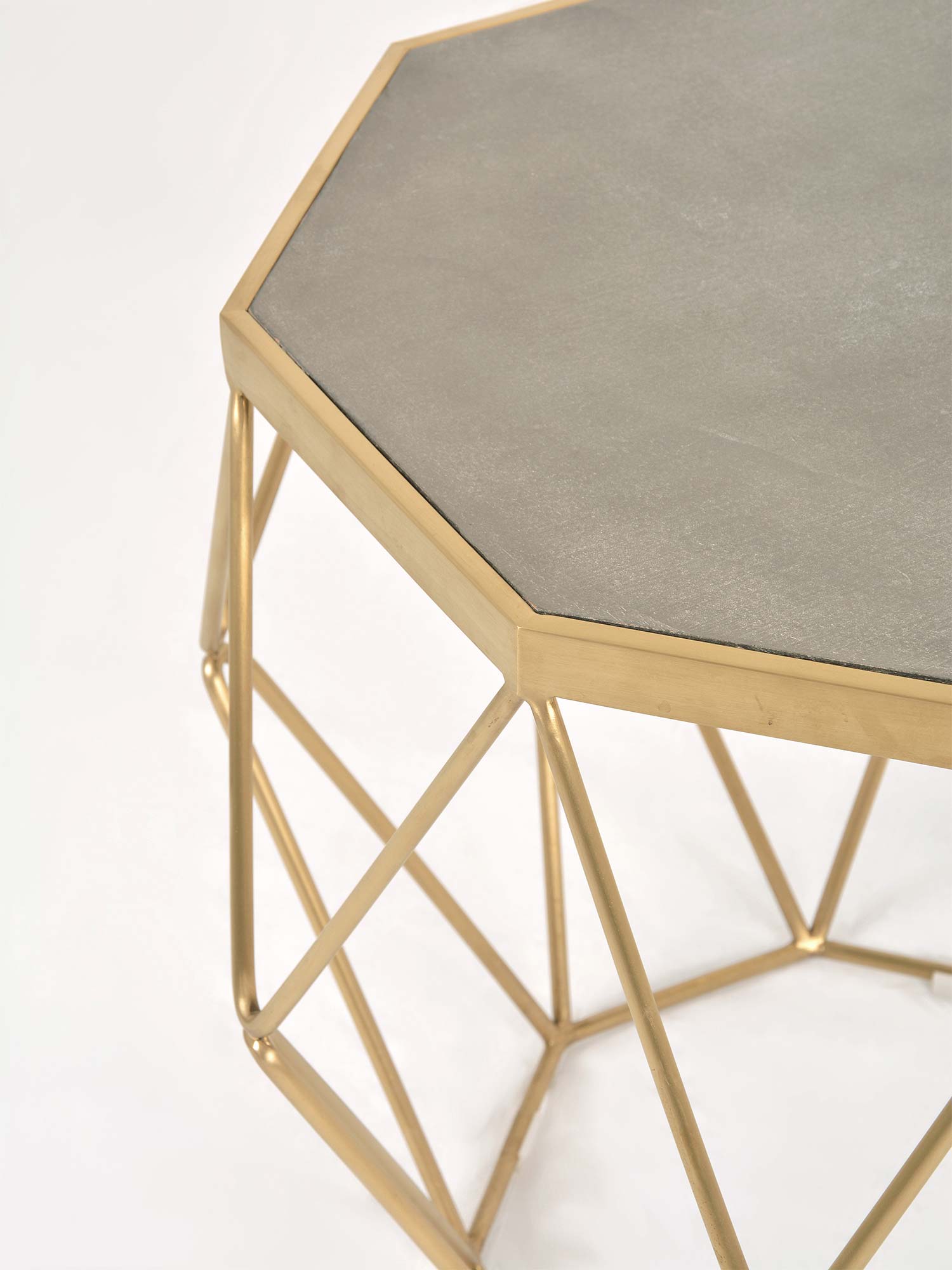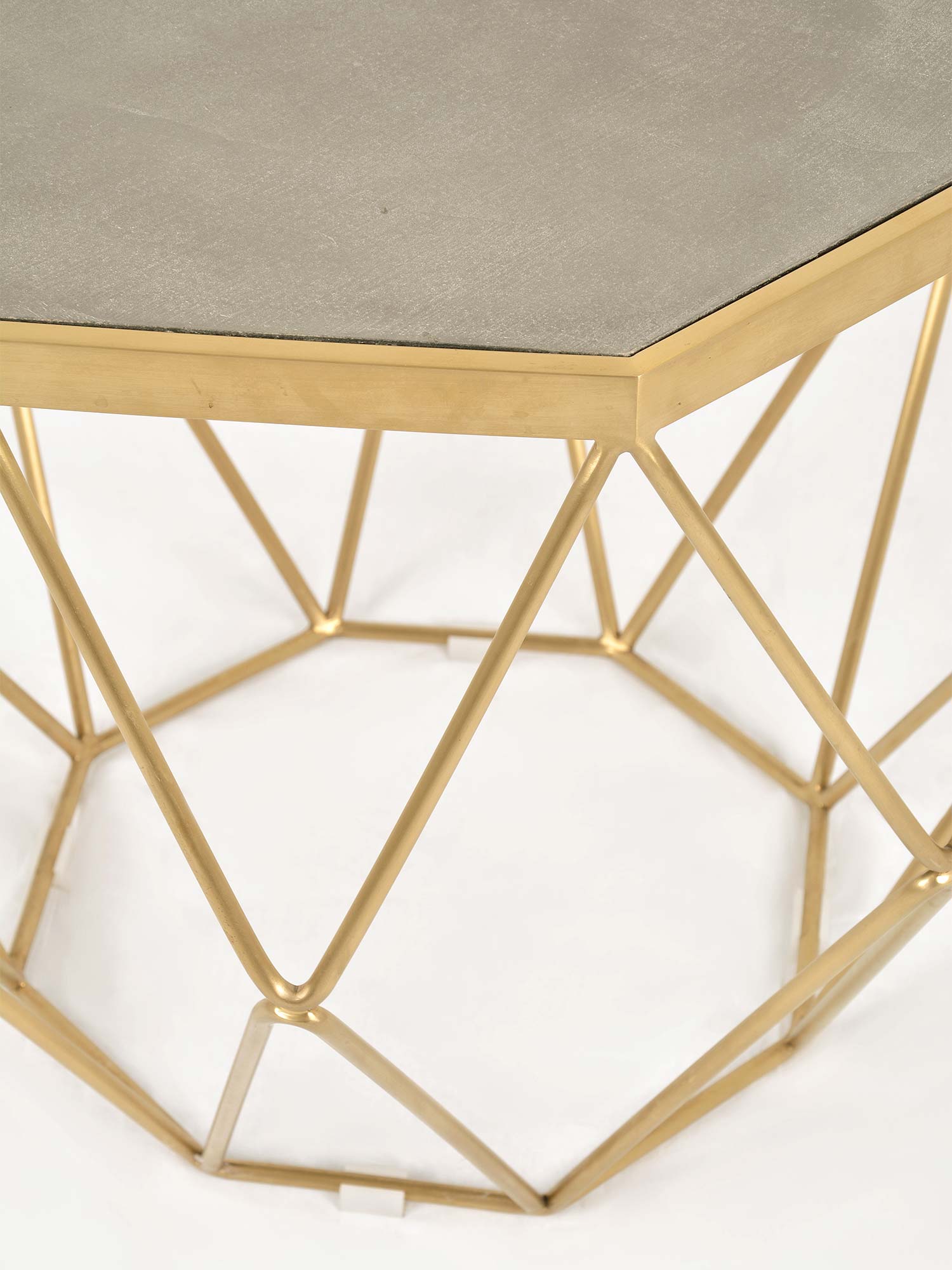 Stolik Luxe to elegancki mebel, który łączy nowoczesny styl z klasycznym wyglądem glamour. Jego geometryczna rama ze stali nierdzewnej w kolorze złotym oraz szary cementowy blat w kształcie oktagonu wprowadzą do Twojego wnętrza niepowtarzalny design. Stolik doskonale komponuje się z nowoczesnym wyposażeniem, stanowiąc elegancki i funkcjonalny element każdego pomieszczenia. Zainwestuj w jakość i wyjątkowy styl, który doda Twojemu wnętrzu luksusowego charakteru.