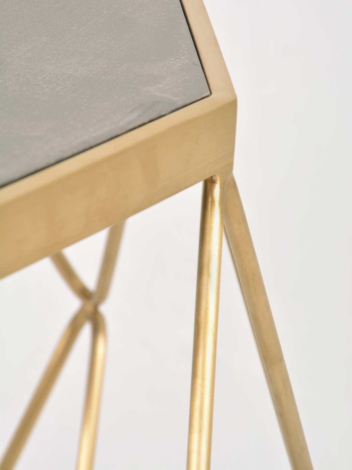 Stolik glamour szary z betonowym blatem i złotą podstawą – Luxe