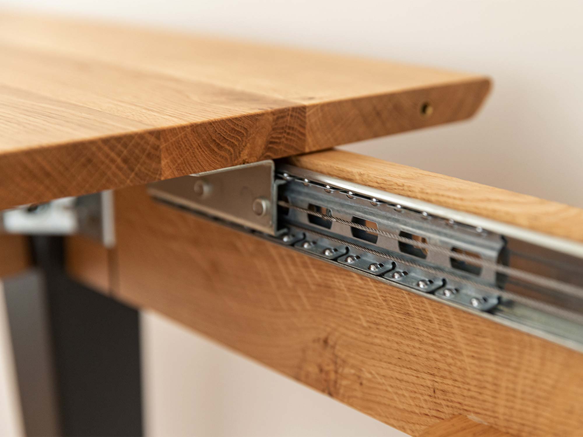 Największym sprzymierzeńcem Twojej codzienności jest mechanizm rozkładania do 165 cm. Jednym ruchem przechodzisz od leniwej kawy we dwoje do kolacji dla sześciu osób.