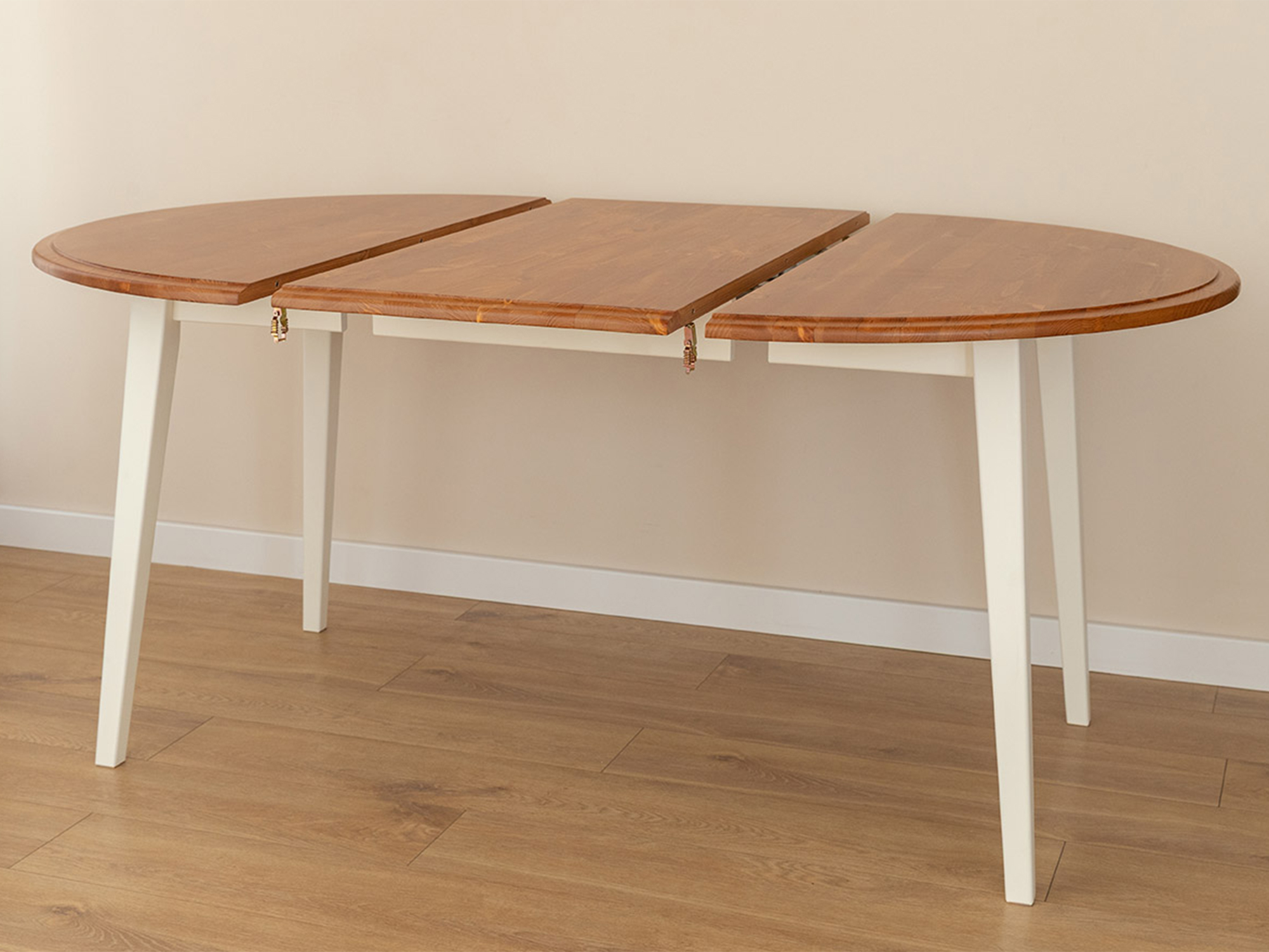 - 3 w 1 – stół okrągły 110 cm, rozkładany do 160 cm lub 210 cm.