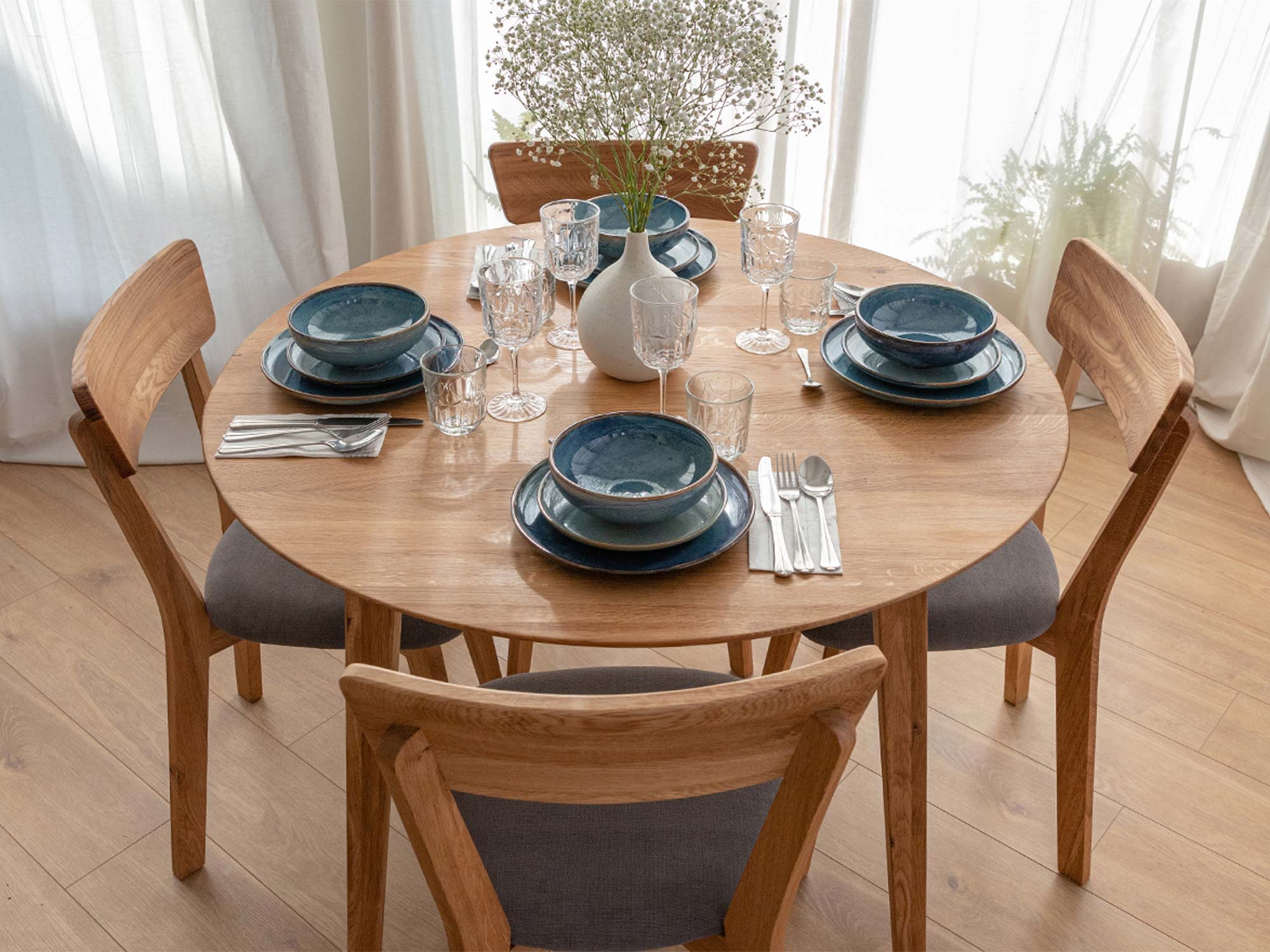 Zobacz, jak będzie wyglądać Twoja jadalnia marzeń: światło świec, Twoja ulubiona zastawa, śmiech bliskich i okrągły blat, który wszystkich zbliża. Ten stół dyskretnie robi swoje — daje przestrzeń, której potrzebujesz tu i teraz.