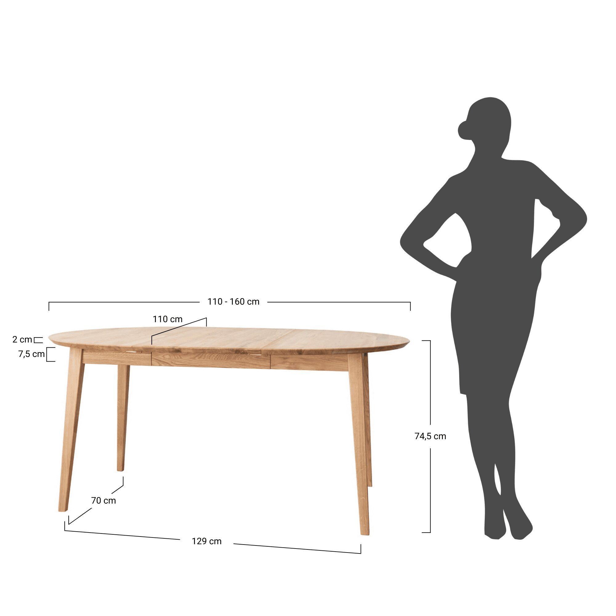 Stół Oakwood charakteryzuje się prostą i elegancką formą, która sprawia, że jest idealnym dopełnieniem każdego wnętrza. Jego okrągły blat o średnicy 110 cm można łatwo rozsunąć do 160 cm, co zapewnia komfort użytkowania, umożliwiając swobodne rozmieszczenie krzeseł wokół stołu. Dzięki temu stół ten jest idealnym rozwiązaniem do codziennych posiłków, a także spotkań z rodziną i przyjaciółmi.