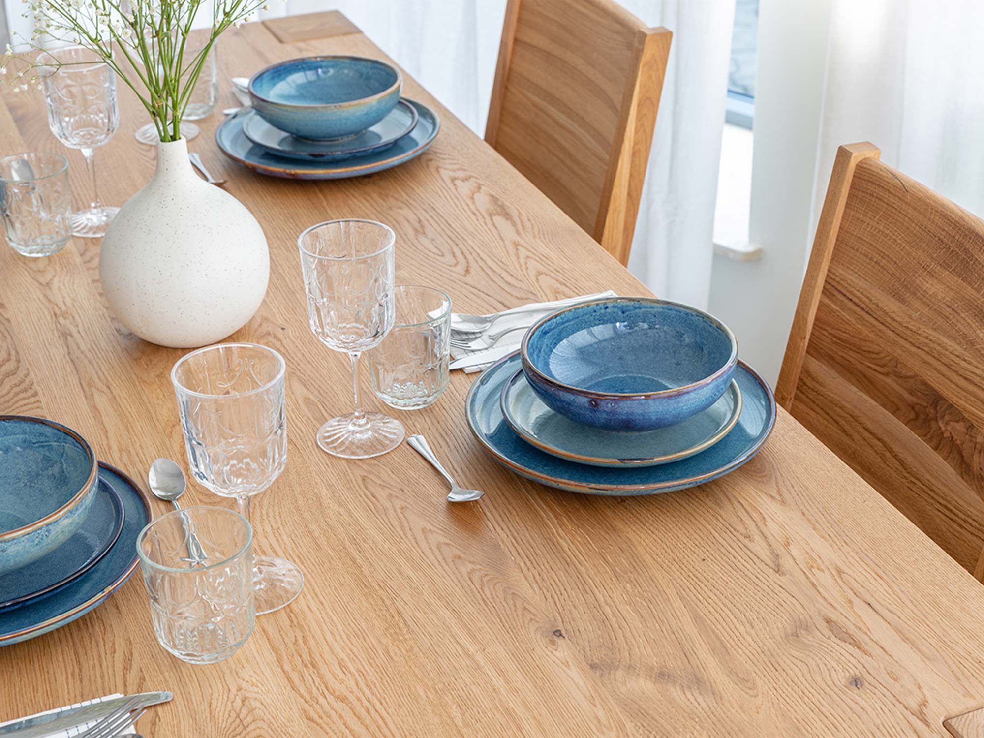 - Trwałe wykończenie – olej i wosk podkreślają rysunek drewna i chronią blat przed codziennym użytkowaniem.