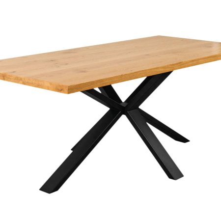 SPIDERIX nie jest zwykłym stołem – to mebel, który ma duszę. Dębowy blat wykonany z litego drewna to esencja trwałości i klasy. Każda deska opowiada inną historię – słoje, sęki i naturalna faktura drewna czynią każdy egzemplarz unikatowym. Podstawę stołu stanowią malowane proszkowo na czarno stalowe nogi, których dynamiczna, krzyżowa forma przywodzi na myśl nowoczesne rzeźby industrialnego designu. Taka konstrukcja nie tylko zapewnia stabilność, ale również dodaje wnętrzu niepowtarzalnego charakteru.