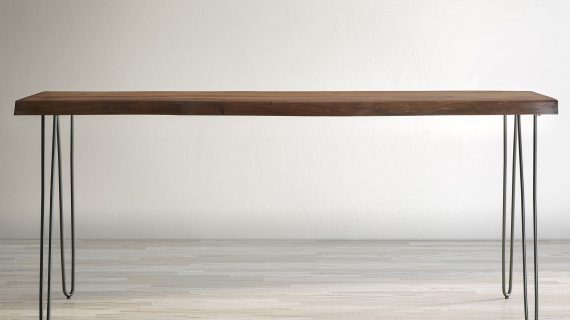 - Elegancka kombinacja orzechowego drewna z czarnymi, żelaznymi nogami, który pasuje do wielu aranżacji