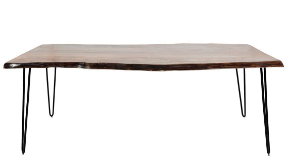 Stół Avola to idealne połączenie industrialnego stylu z elegancją drewna. Blat wykonany z akacjowego drewna w odcieniu orzecha włoskiego jest nie tylko estetyczny, ale także funkcjonalny. Jego nieregularny kształt jest wynikiem naturalnych właściwości drewna, co czyni każdy stół jedynym w swoim rodzaju. Żelazne nogi typu hairpin w kolorze czarnym nadają meblowi lekkości i nowoczesnego wyglądu, a zarazem zapewniają stabilność. Stół ten jest doskonałym rozwiązaniem do przestronnych salonów, jadalni czy biur w stylu loftowym, nowoczesnym lub retro.
