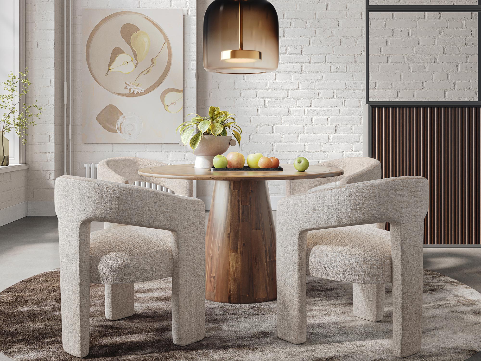 Zestaw Avola to mebel w klasycznym stylu, który zachwyca swoją prostotą i elegancją. Stół o długości 127 cm oraz cztery krzesła wykonane z drewna akacji w ciepłym kolorze orzecha włoskiego doskonale pasują do wielu rodzajów wnętrz, od nowoczesnych po tradycyjne. Stół ma solidną konstrukcję, a jego gładka powierzchnia jest idealna do codziennego użytku. Krzesła, dzięki ergonomicznemu oparciu, zapewniają wygodę podczas długich posiłków. Całość zestawu wyróżnia się subtelnym wykończeniem oraz eleganckimi detalami, które podkreślają jego ponadczasowy charakter.