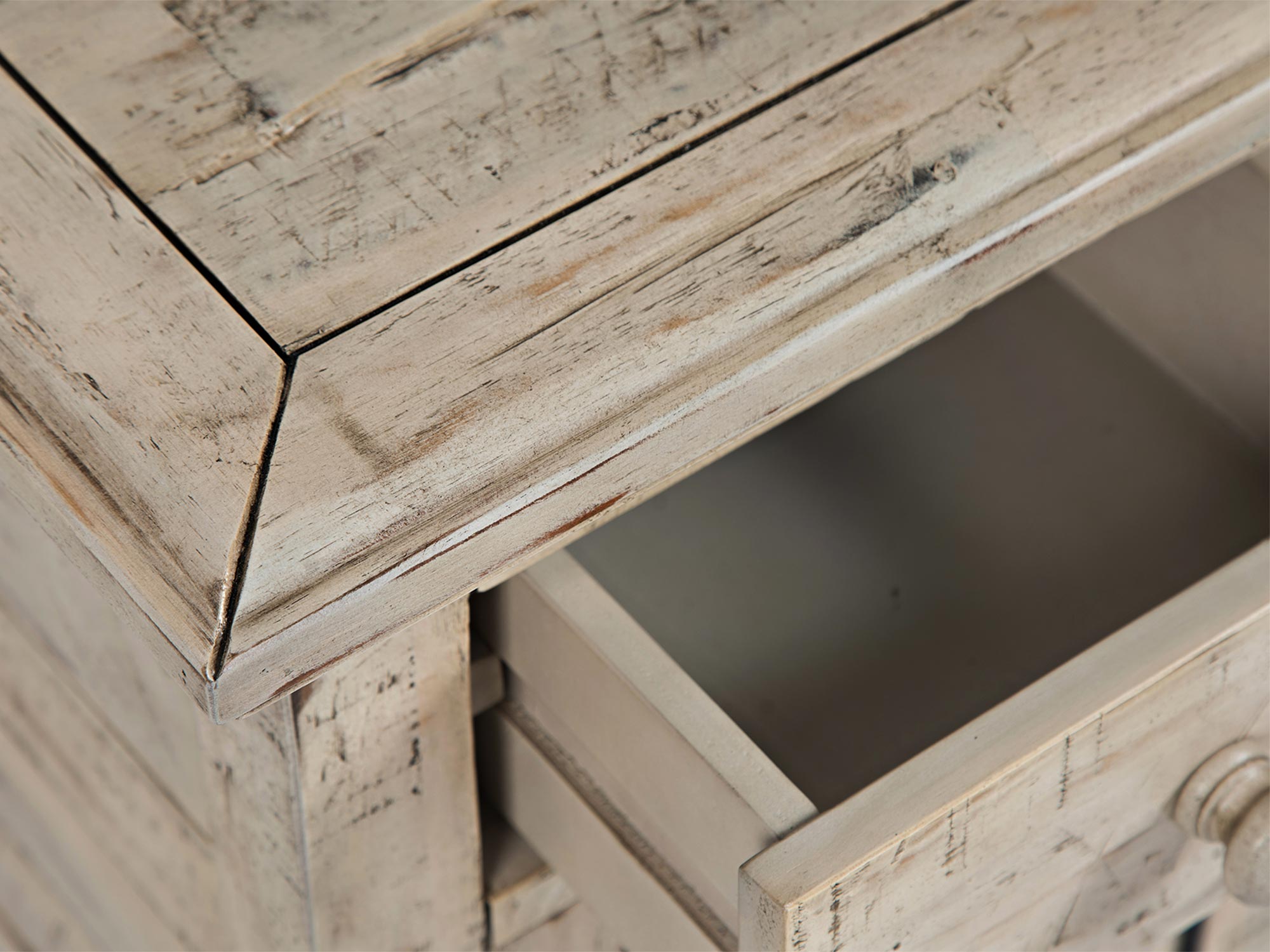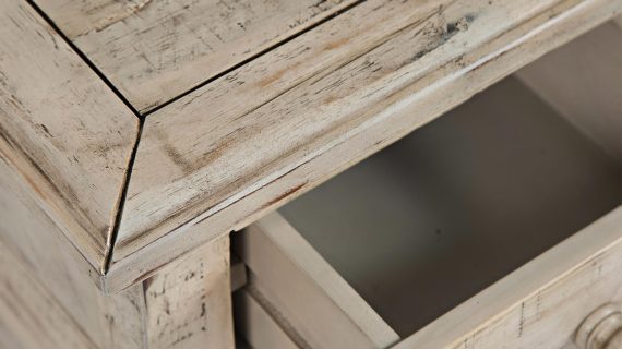 • Inne szczegóły: Wbudowane gniazdo USB, przetarcia shabby chic, ozdobne listewki, frezowany blat