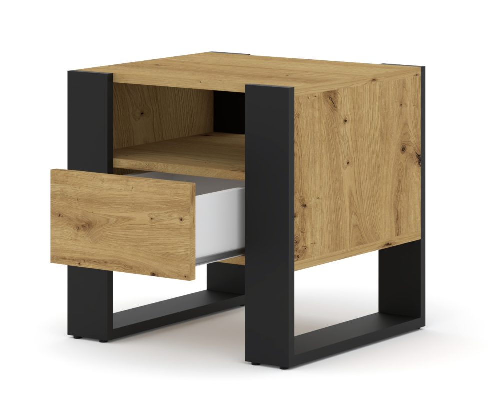 Szafka nocna TAKOZ została zaprojektowana z myślą o osobach, które cenią styl i funkcjonalność. Jej prosty, a zarazem wyrazisty wygląd sprawia, że odnajdzie się zarówno w minimalistycznych sypialniach, jak i loftowych, rustykalnych czy industrialnych wnętrzach. Dostępna jest w dwóch wersjach kolorystycznych – klasycznej bieli z czernią oraz w oryginalnym zestawieniu czerni z odcieniem dąb artisan. To idealna odpowiedź na potrzeby nowoczesnych aranżacji wnętrz – niezależnie od płci użytkownika czy stylu życia domowników.