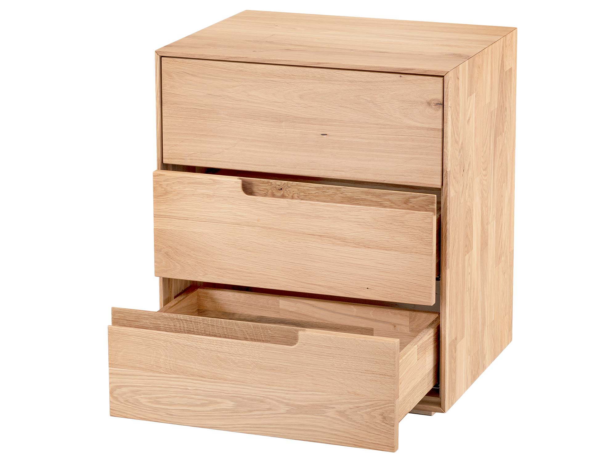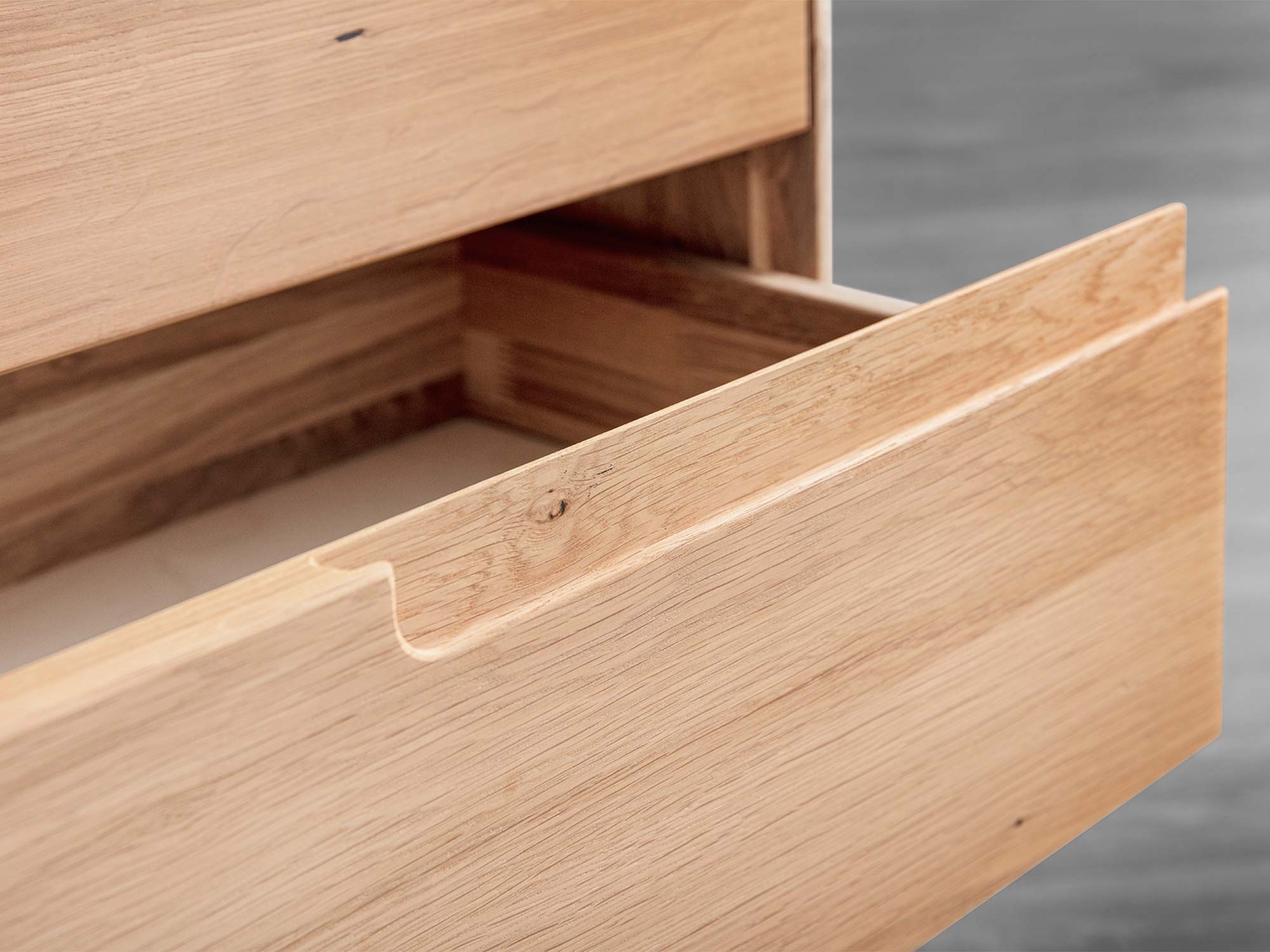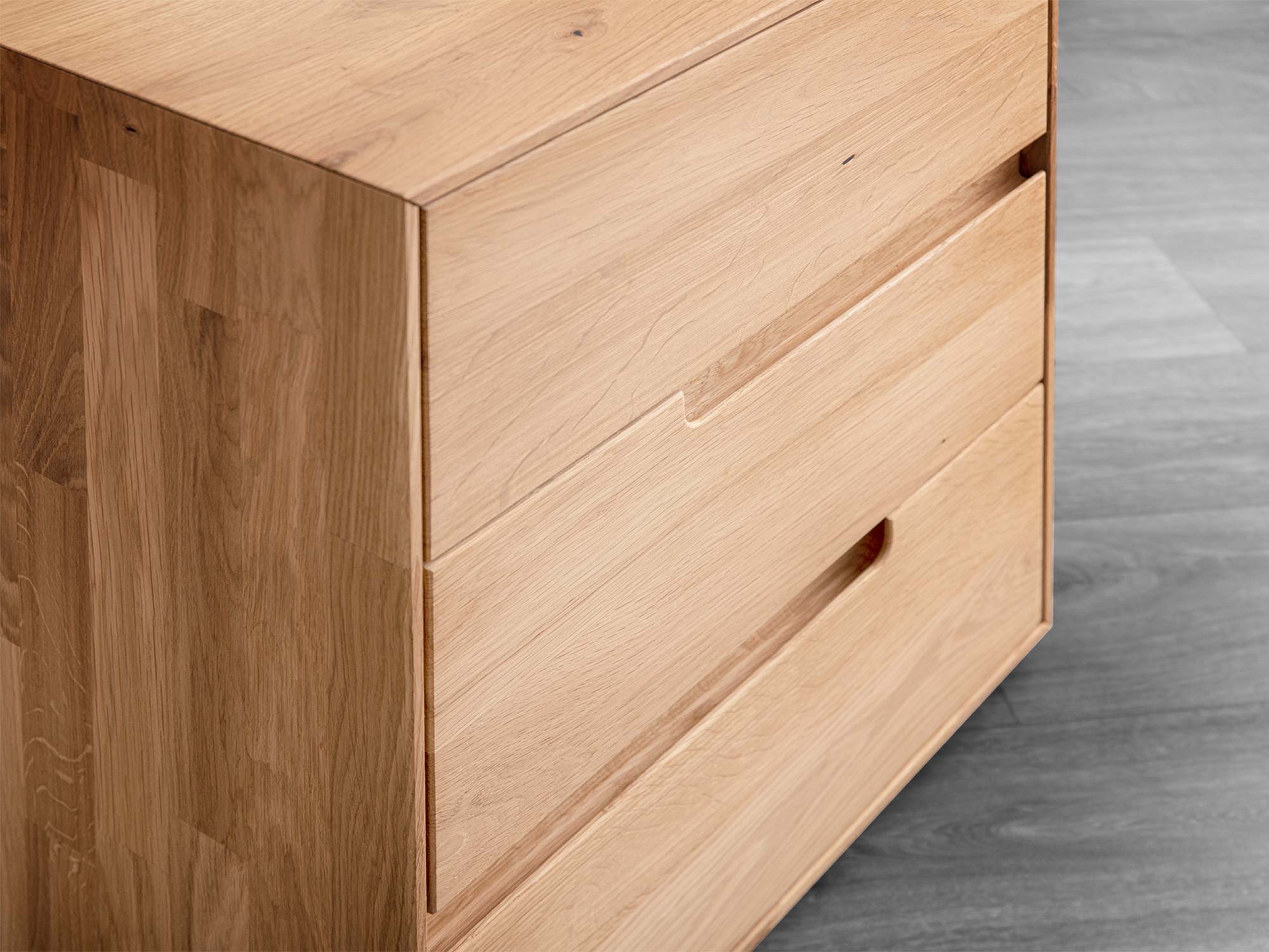 Kobko 3L to elegancka, minimalistyczna szafka nocna z litego drewna dębowego, zaprojektowana z myślą o nowoczesnych sypialniach, w których liczy się i styl, i porządek. Trzy pojemne szuflady w systemie grifflos (bez uchwytów) oraz cichy domyk Softclose Häfele sprawiają, że każdy wieczorny rytuał płynie spokojniej. To mebel dla Ciebie, jeśli kochasz naturalne materiały, czyste linie i rozwiązania, które ułatwiają codzienność. Zobacz, jak będzie wyglądać Twoja sypialnia marzeń: harmonijna, funkcjonalna i pięknie uporządkowana.