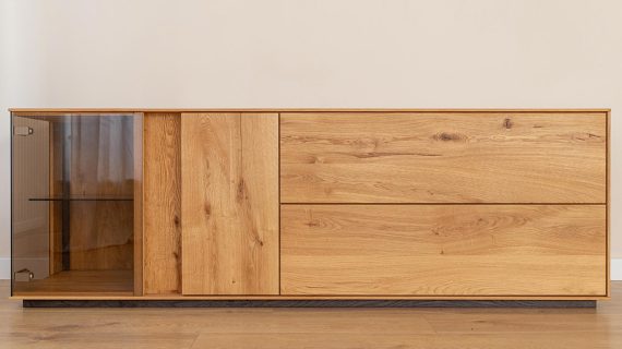 Dębowa Komoda TV z Przeszkleniem Zenovia – Kwintesencja Elegancji i Naturalnego Piękna