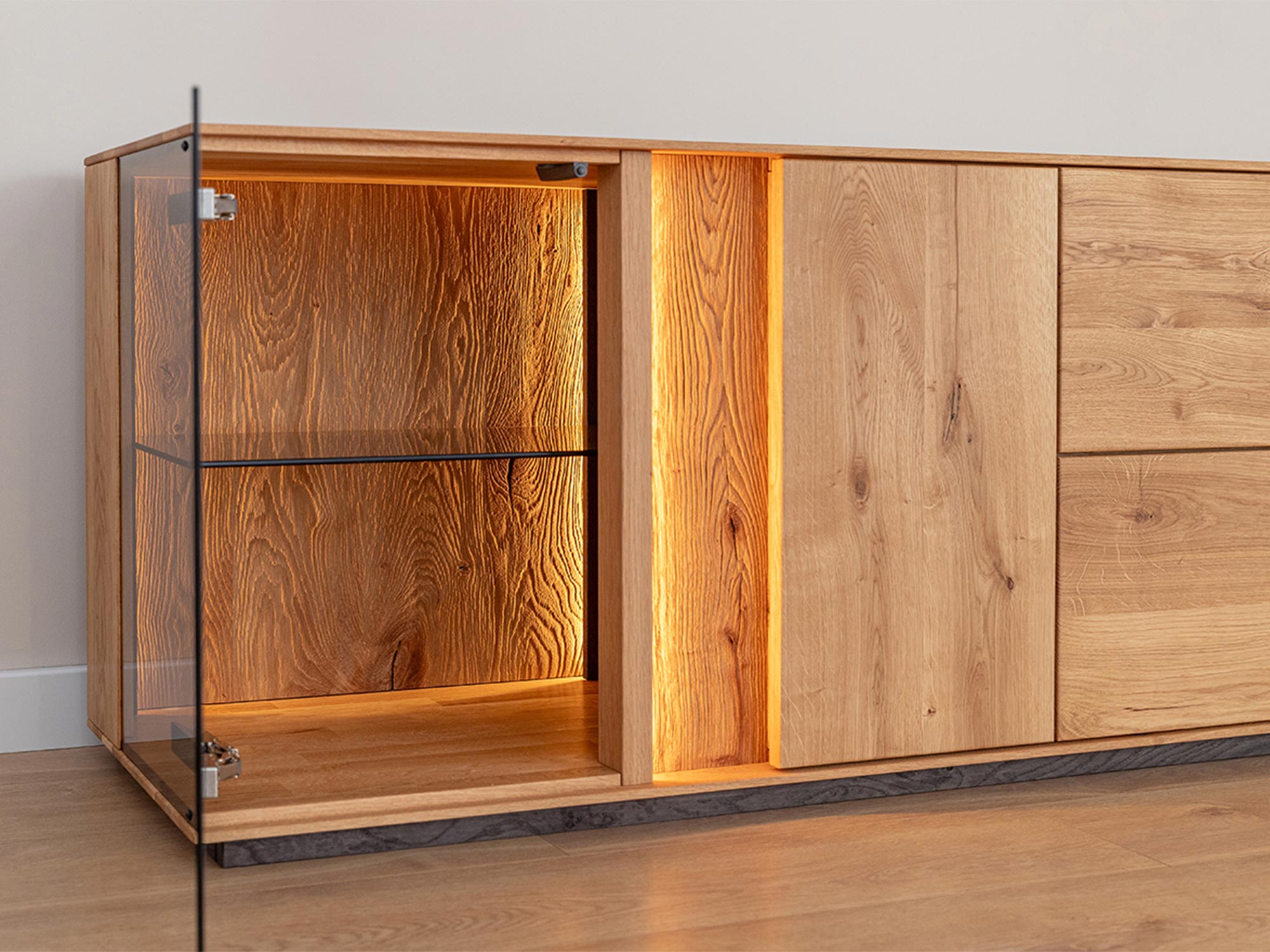 Dębowa Komoda TV z Przeszkleniem Zenovia