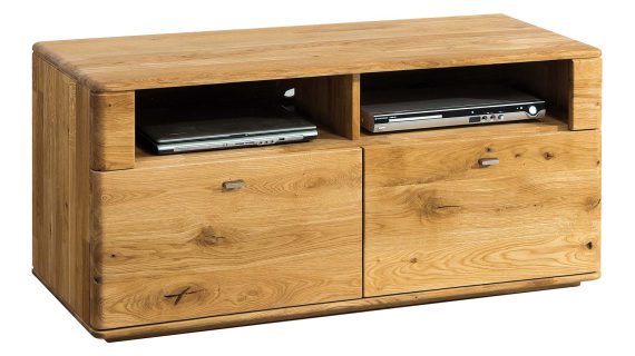 Widoczna obok szafka RTV drewniana to świetny mebel, nadający każdemu pokojowi gustownego stylu i harmonii. Z pewnością do produkcji szafki wykorzystano wysokiej jakości materiały – składa się ona z litego drewna dębowego najlepszego gatunku. Ponadto drewniany stolik pod telewizor zaprojektowano w nowoczesnym stylu. Przede wszystkim masywny korpus i stylowe sęki dodają szafce reprezentacyjnej formy, która zjawiskowo wygląda połączona z prostą bryłą. Dodatkowo mebel świetnie dopasuje się do innych mebli wykonanych w stylu skandynawskim i wniesie szczyptę do pomieszczenia.